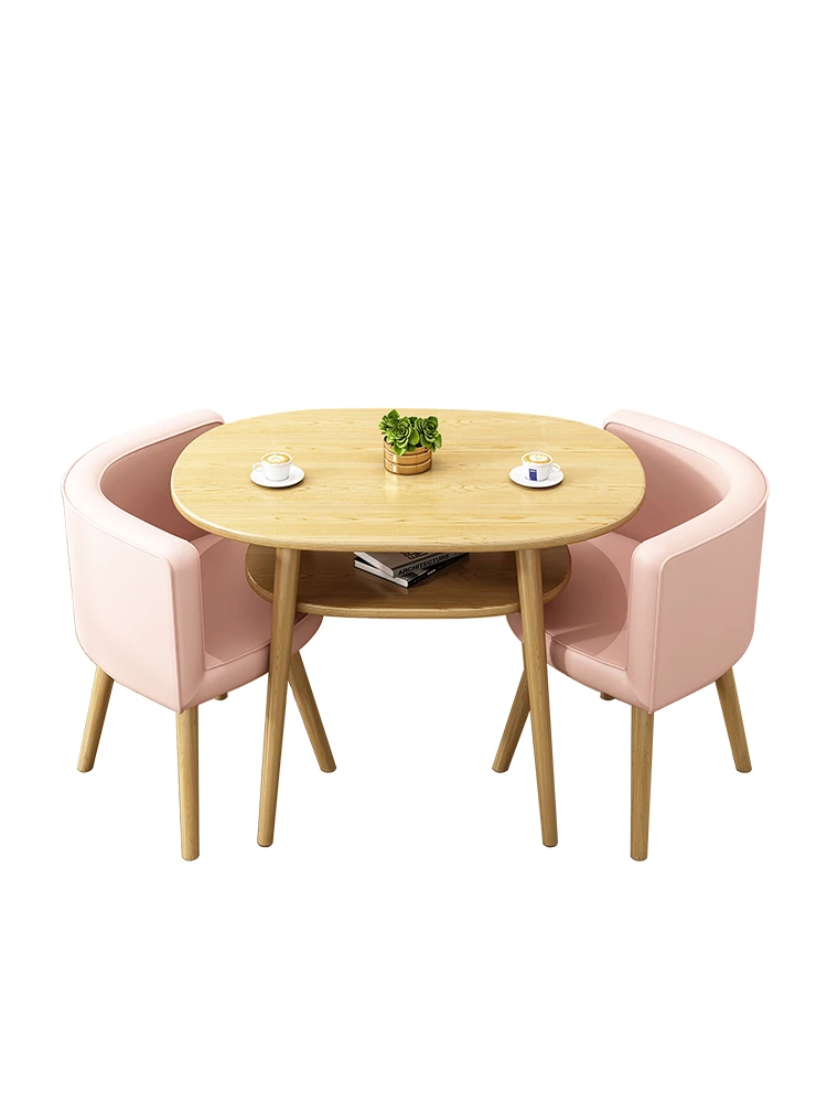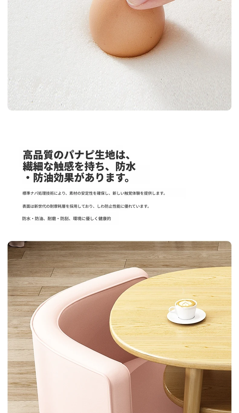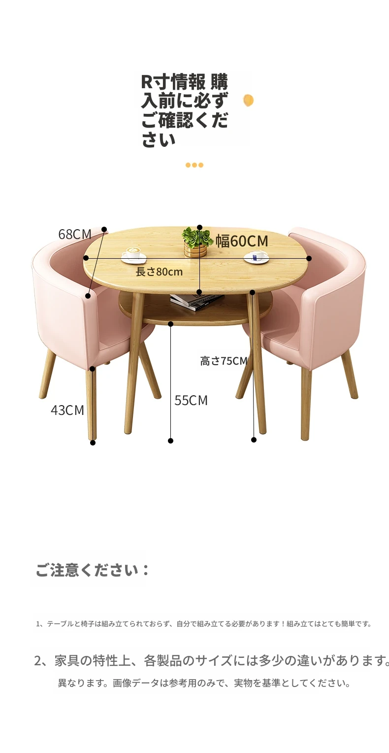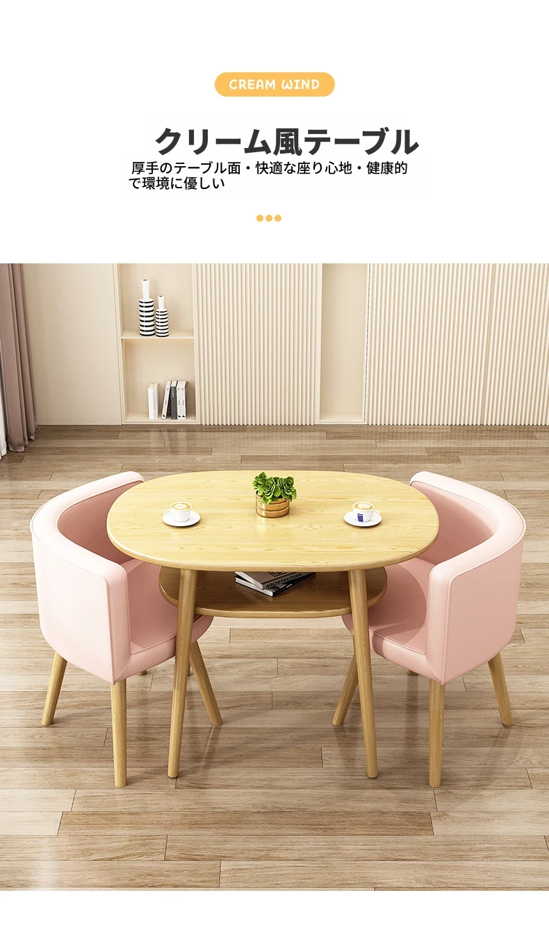 クリームピンク80cm二重楕円テーブル+2レザー椅子