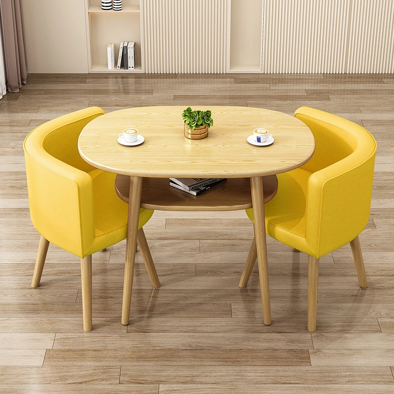 イエロー80cm二重楕円テーブル+2レザー椅子