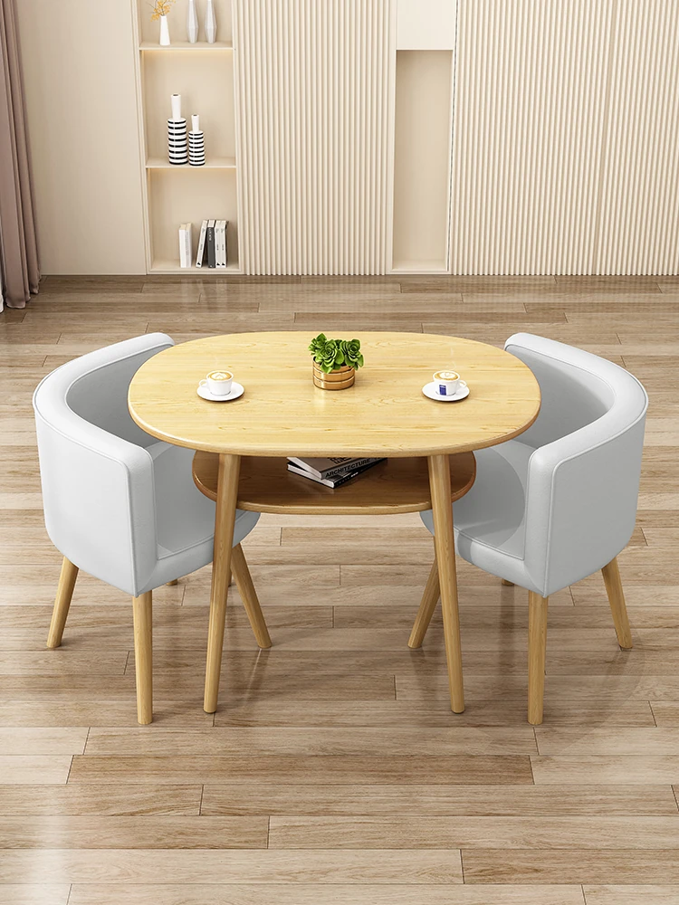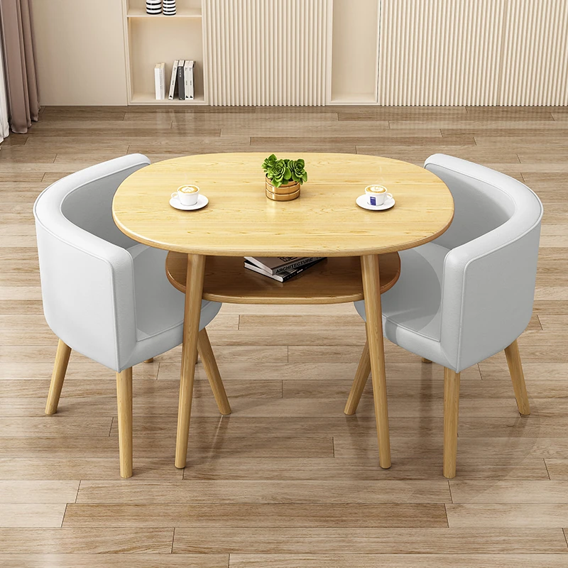 ライトグレー80cm二重楕円テーブル+2レザー椅子