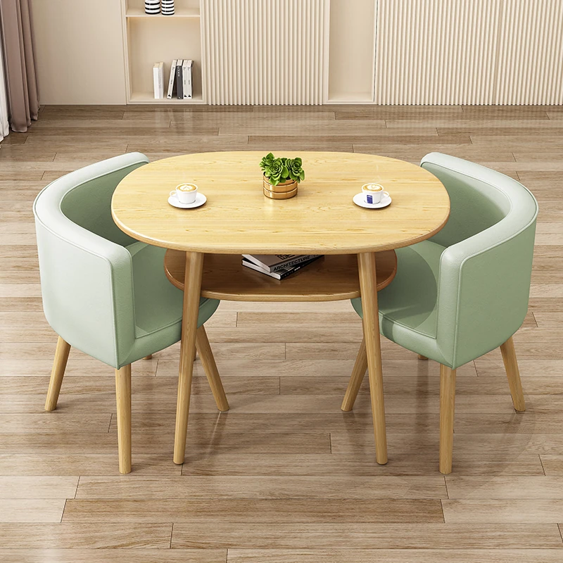 ライトグリーン80cm二重楕円テーブル+2レザー椅子