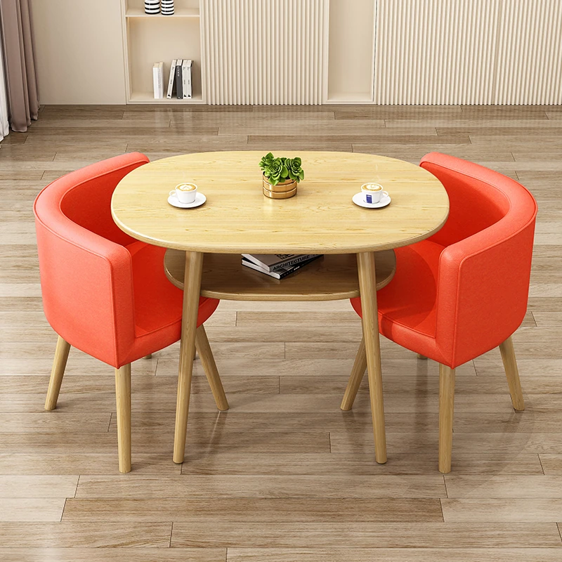 クリームオレンジ80cm二重楕円テーブル+2レザー椅子