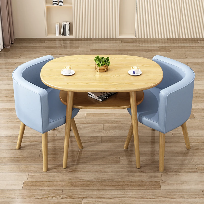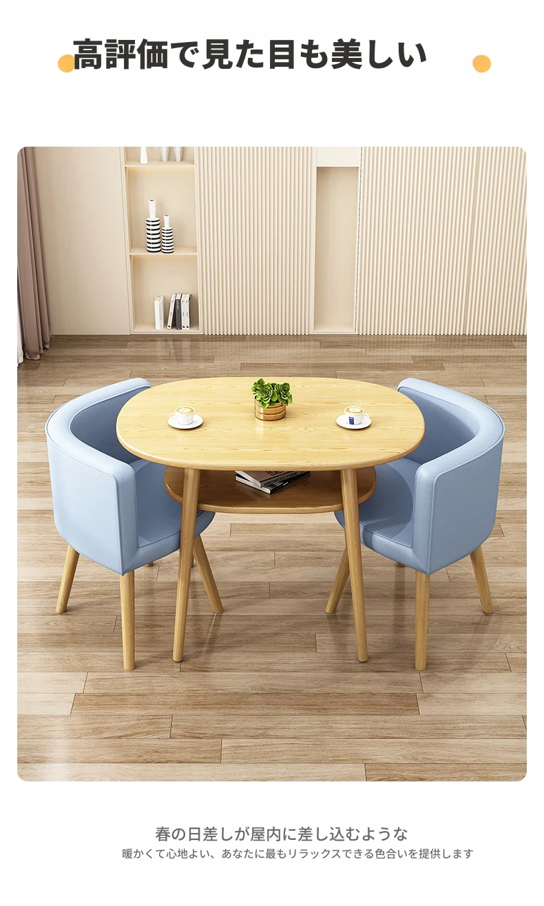 クリームブルー80cm二重楕円テーブル+2レザー椅子