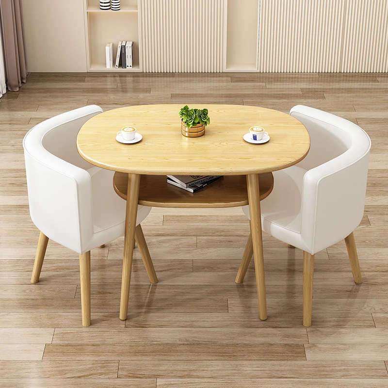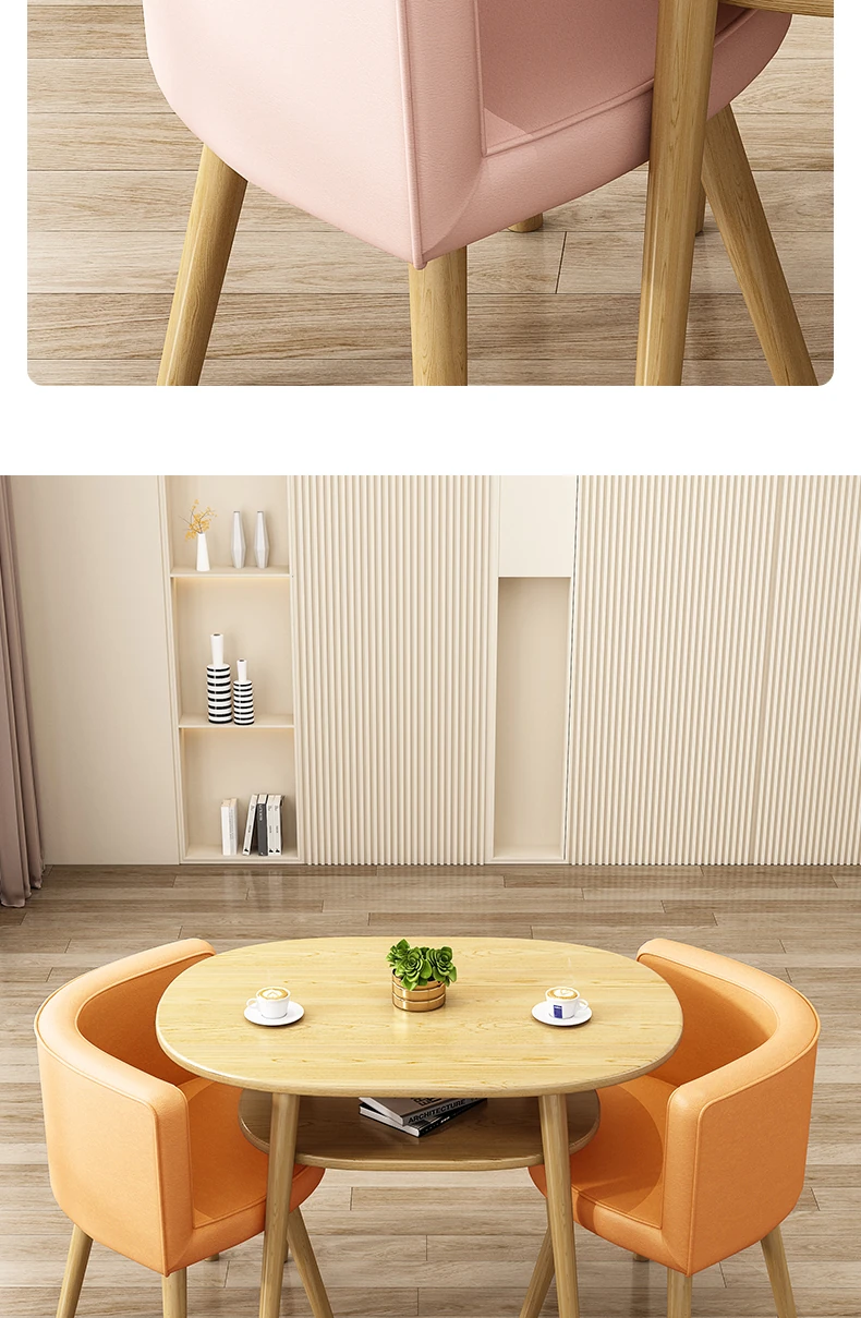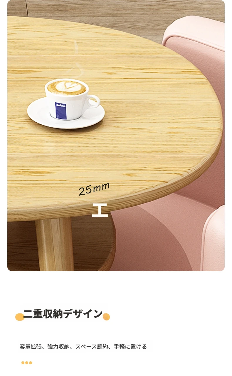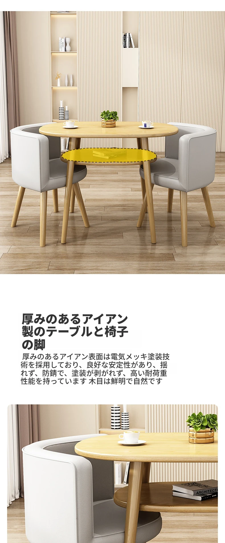おしゃれなカフェスタイルの商談テーブルセット!小型店舗にぴったりな、クリームカラーの可愛い丸テーブルと椅子のコンビ。お客様を迎えるのに最適なリラックス空間を演出します!