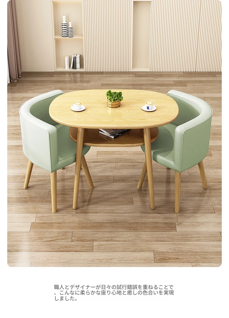 クリームグリーン80cm二重楕円テーブル+2レザー椅子