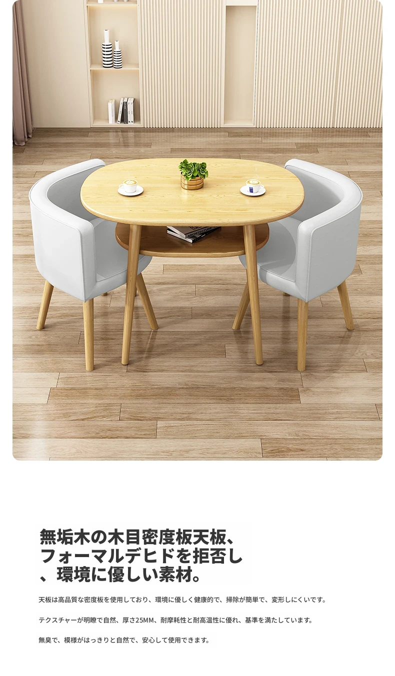 クリームホワイト80cm二重楕円テーブル+2レザー椅子