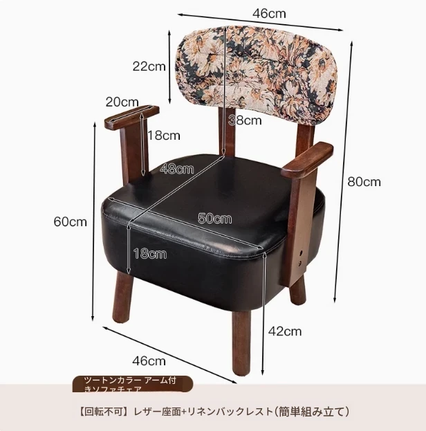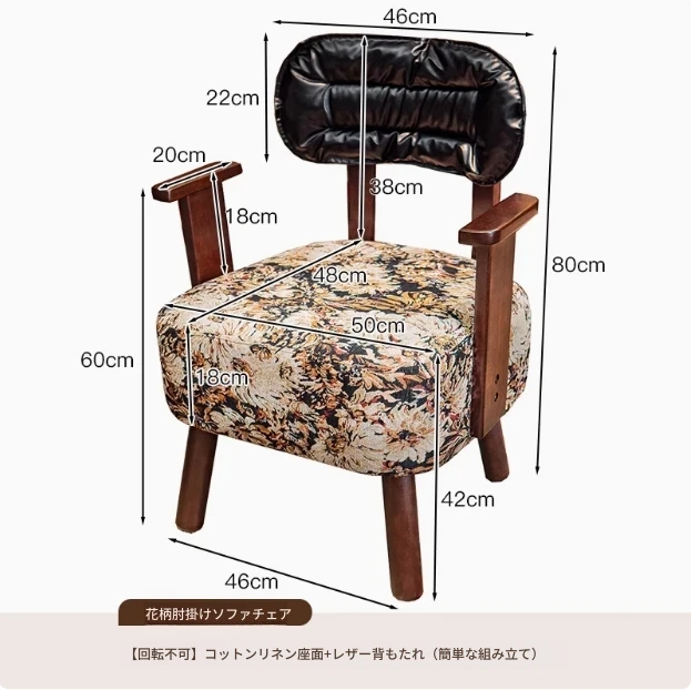 花柄アームレスト回転ソファ(回転可能) 四角い脚