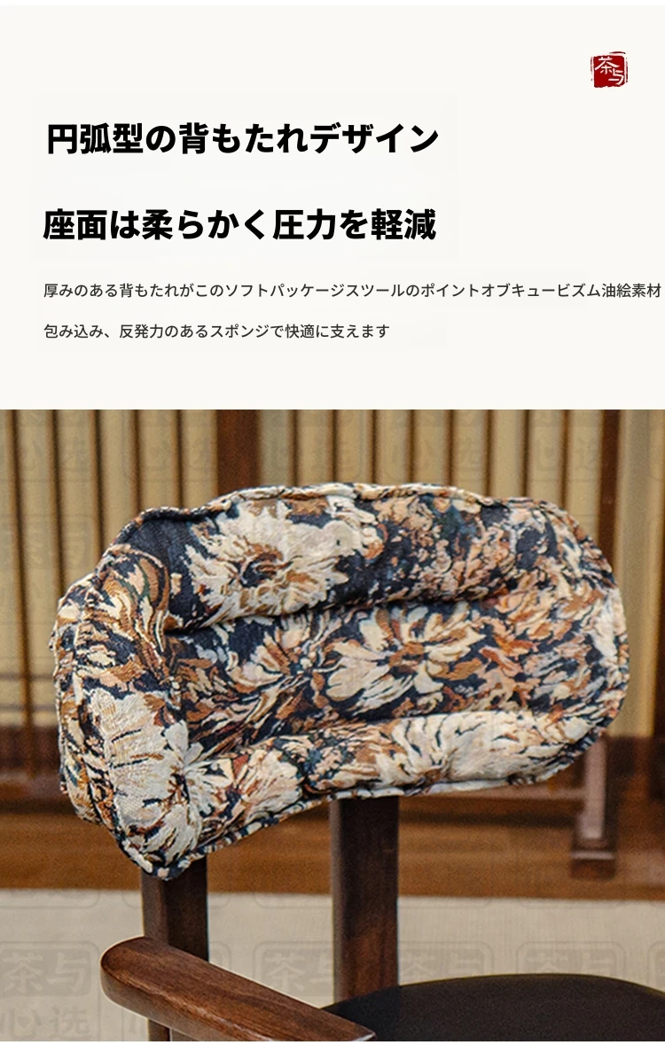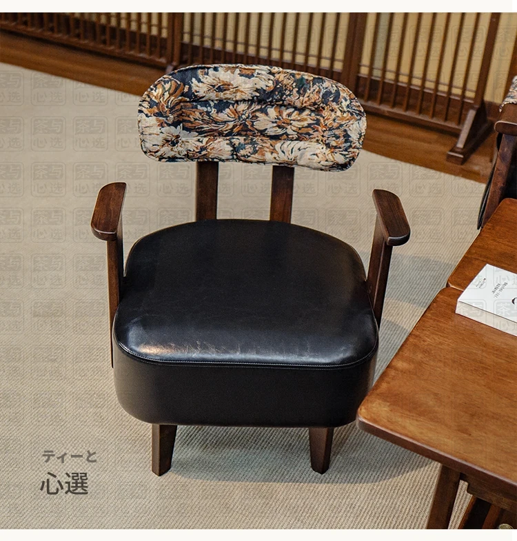 花柄肘付きソファチェア(回転なし) 丸脚