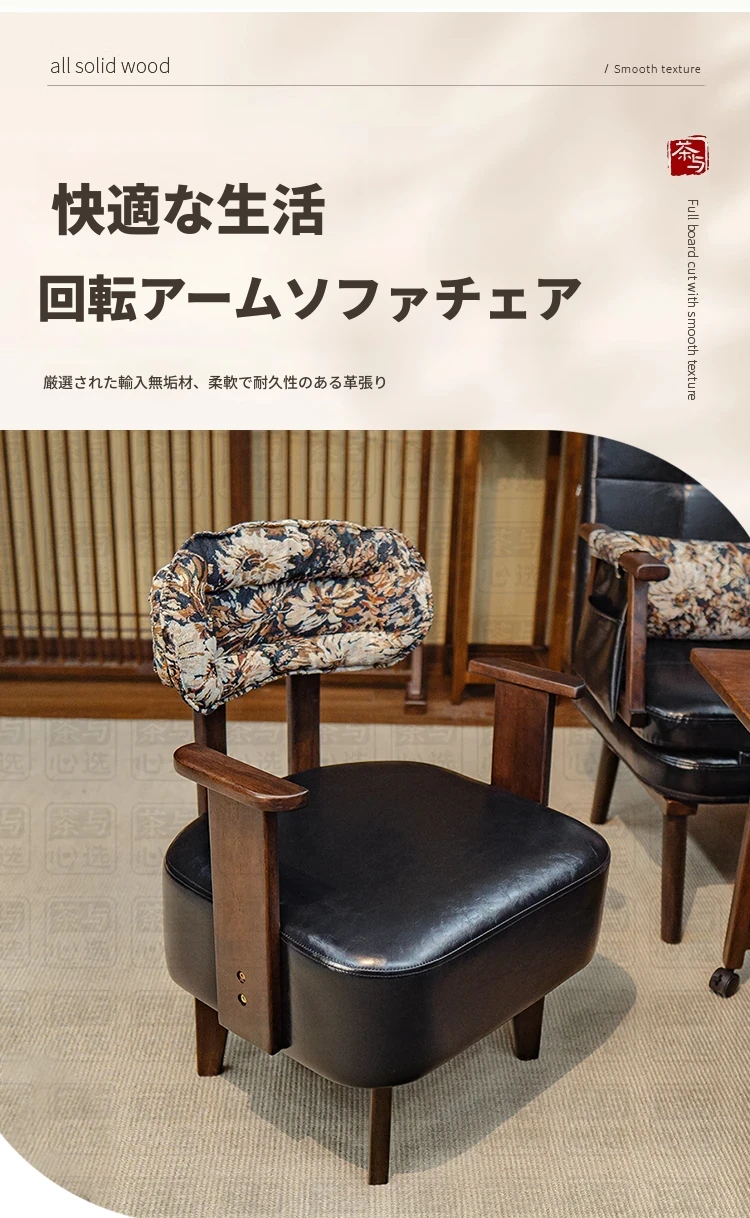 アームレスト付きのウッド製ミニマリストリラックスソファチェア - 寝室やリビングに最適な背もたれ付きの一人掛けソファ。回転機能付きで、くつろぎタイムをさらに快適に!