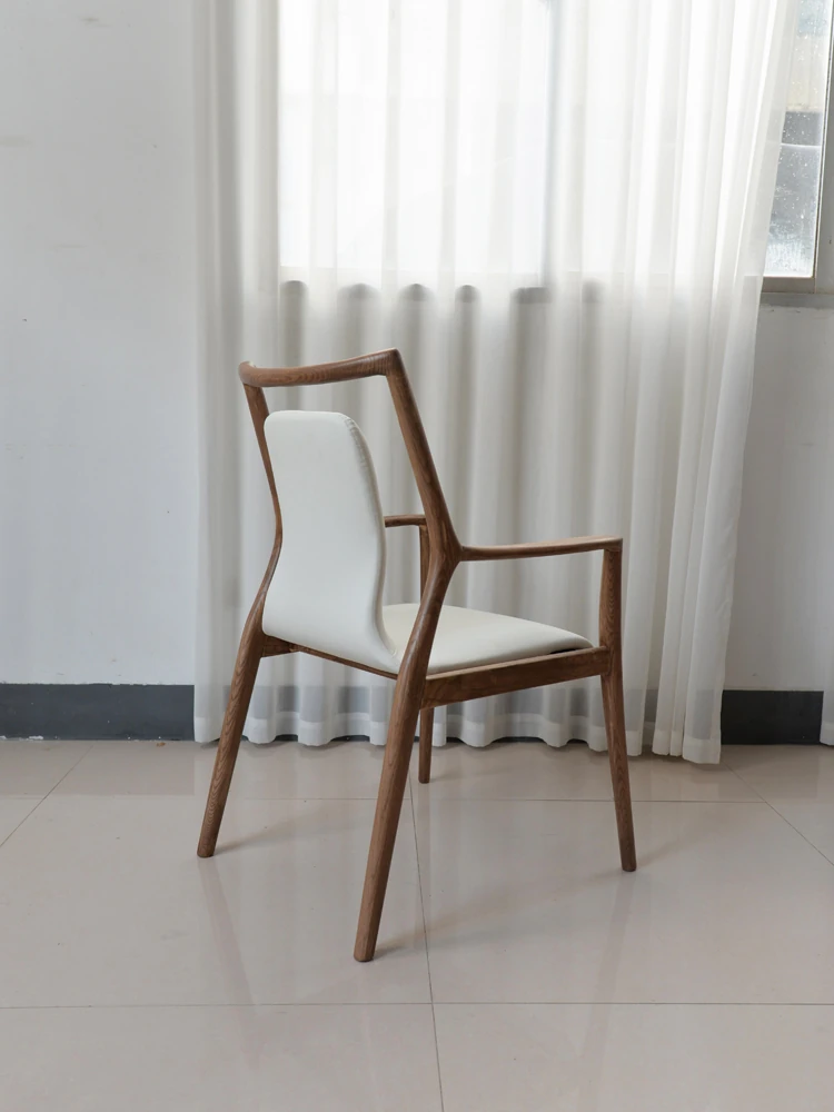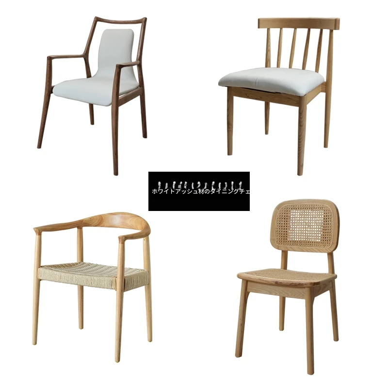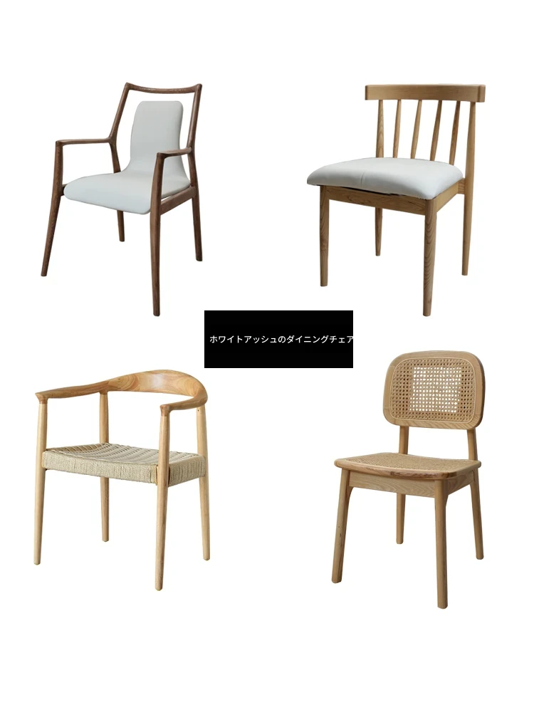 北米産ホワイトアッシュ材の無垢材ダイニングチェア - シンプルでモダンなデザイン、リビングルームやティータイムに最適なリラックスチェア!読書にもぴったりの快適な背もたれ付き。