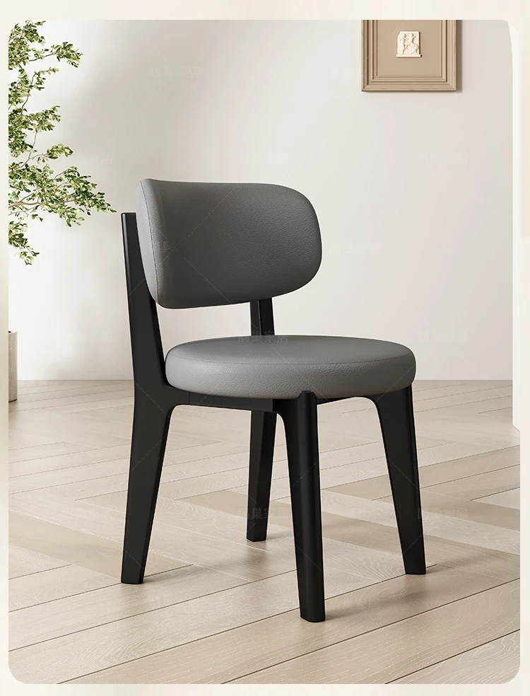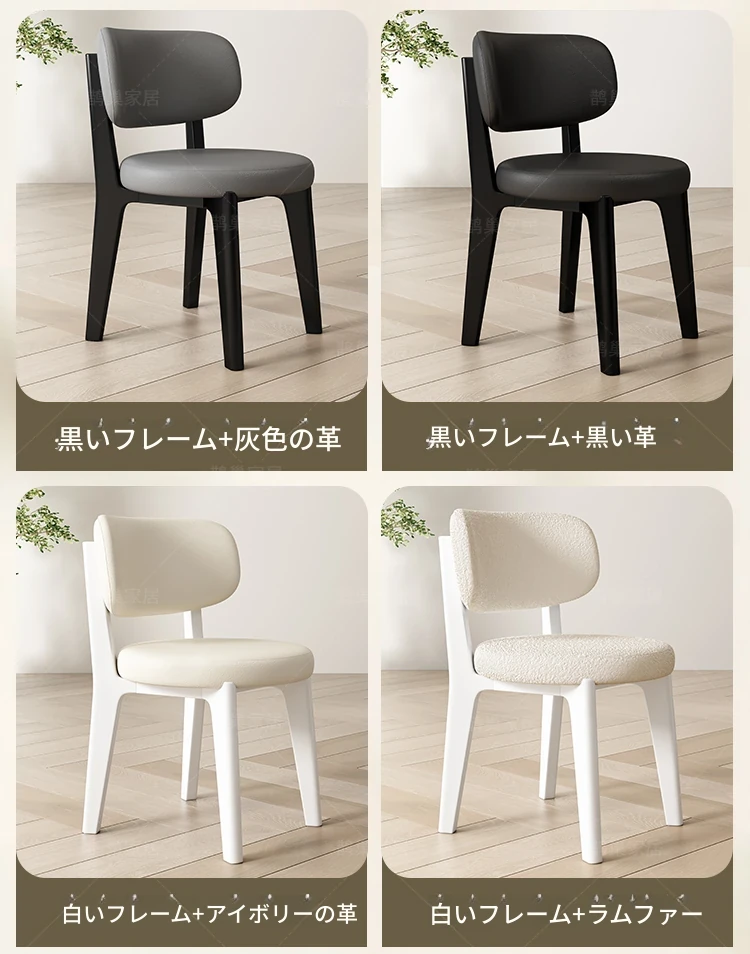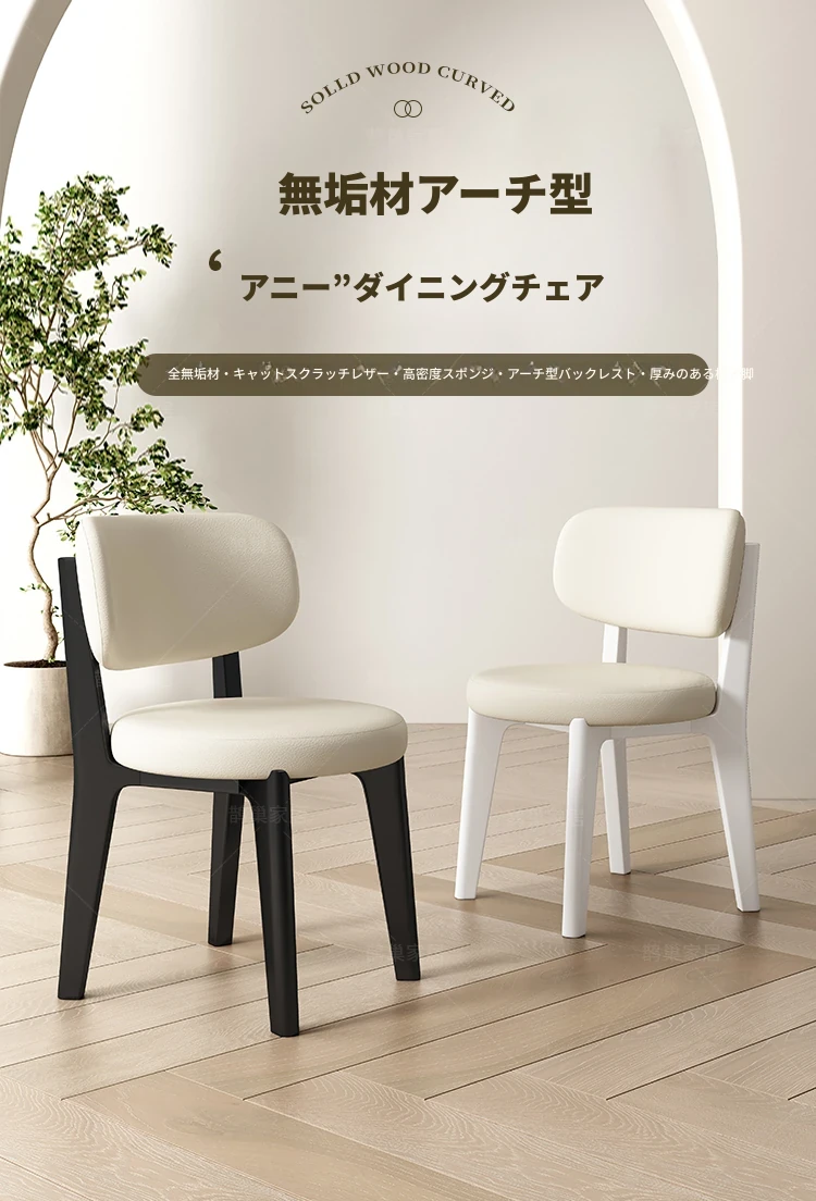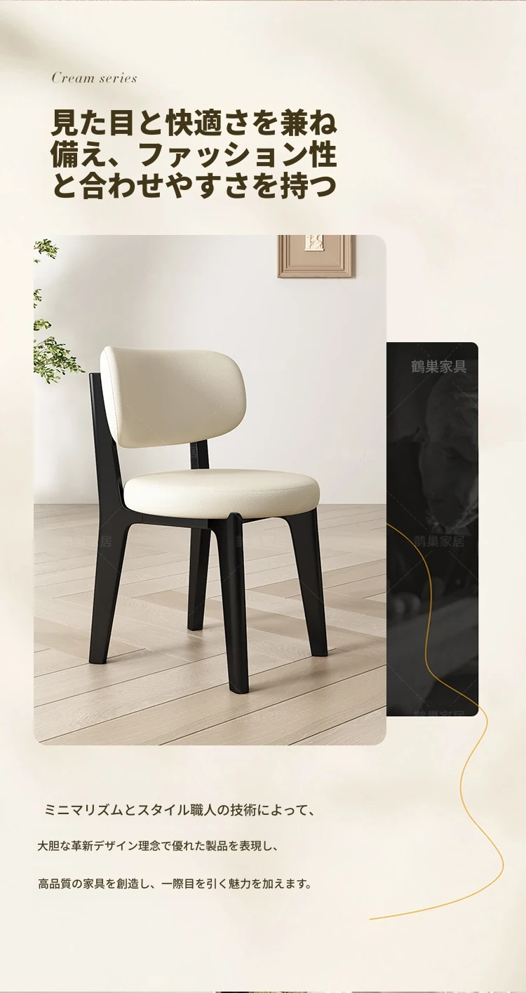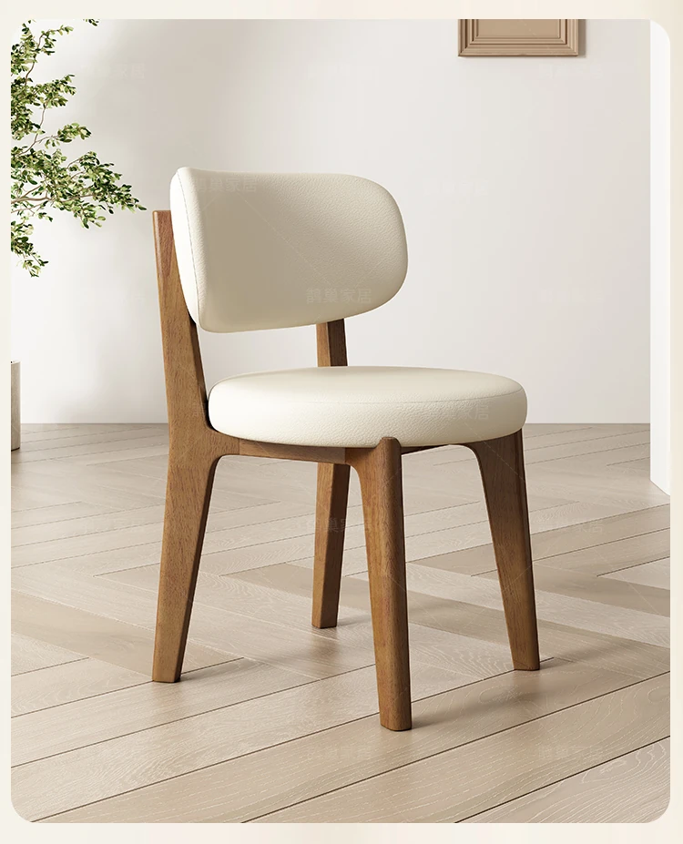 デザイナーによるシンプルでモダンな実木製ダイニングチェア。快適なソフトパック背もたれ付きで、上品な軽奢スタイル。家庭用ダイニングルームにぴったりの魅力的な選択!