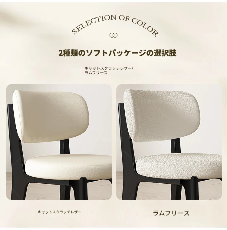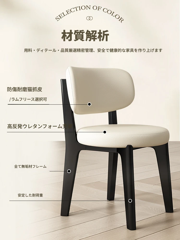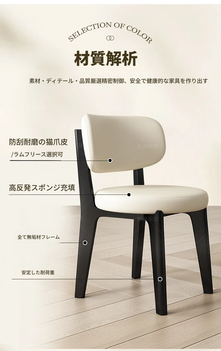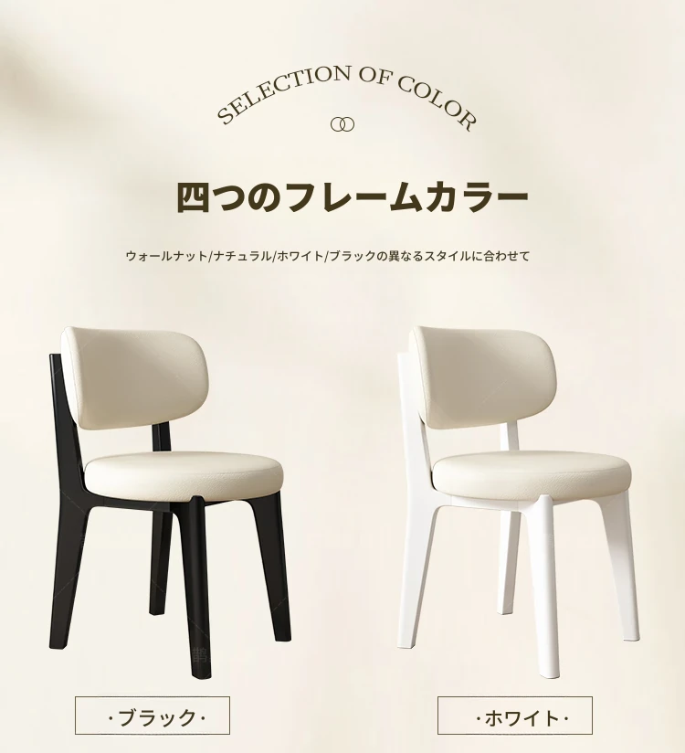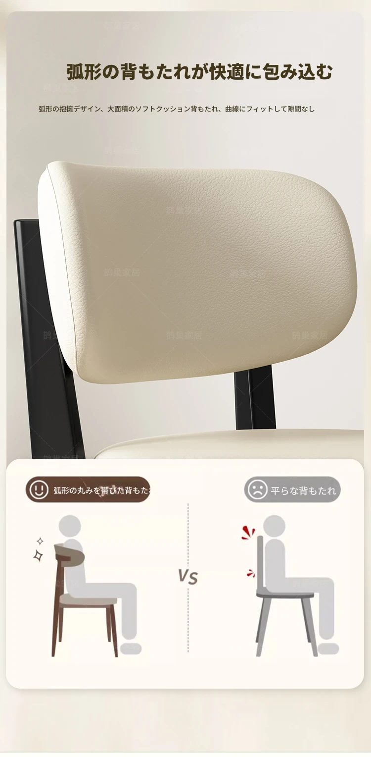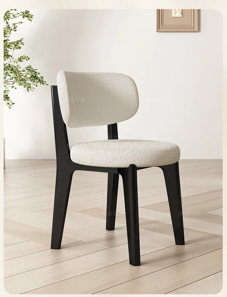 デザイナーによるシンプルでモダンな実木製ダイニングチェア。快適なソフトパック背もたれ付きで、上品な軽奢スタイル。家庭用ダイニングルームにぴったりの魅力的な選択!
