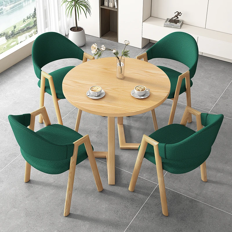 80円卓+4緑布椅-ナチュラル色脚