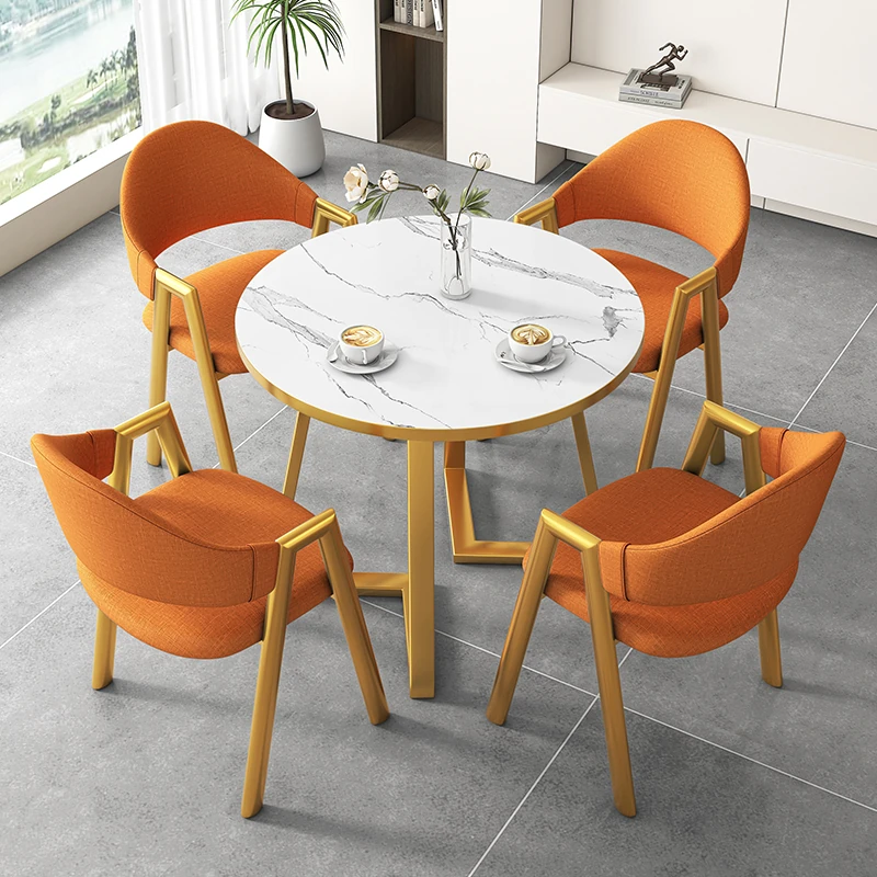 80円卓+4オレンジ布椅-金色脚