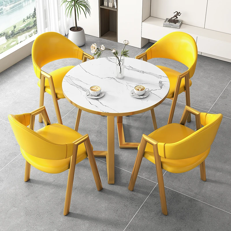 80円卓+4黄色革椅-金色脚