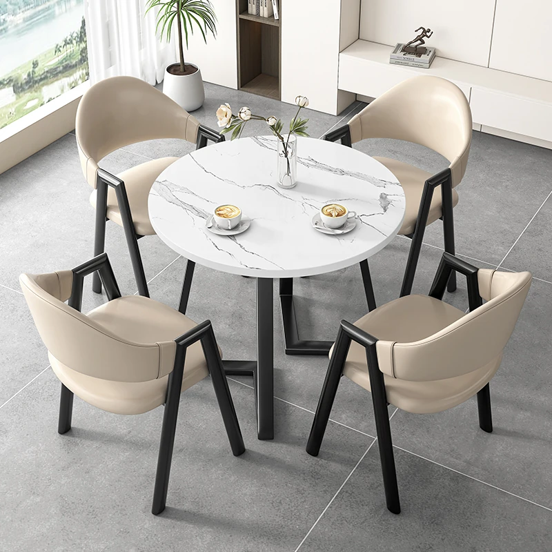 人気のインフルエンサーも愛用!おしゃれな接客用デスク&チェアセット。オフィスやリラックスしたバルコニーに最適なシンプルな小型円卓。北欧スタイルのダイニングテーブルや会議テーブルとしても活躍!