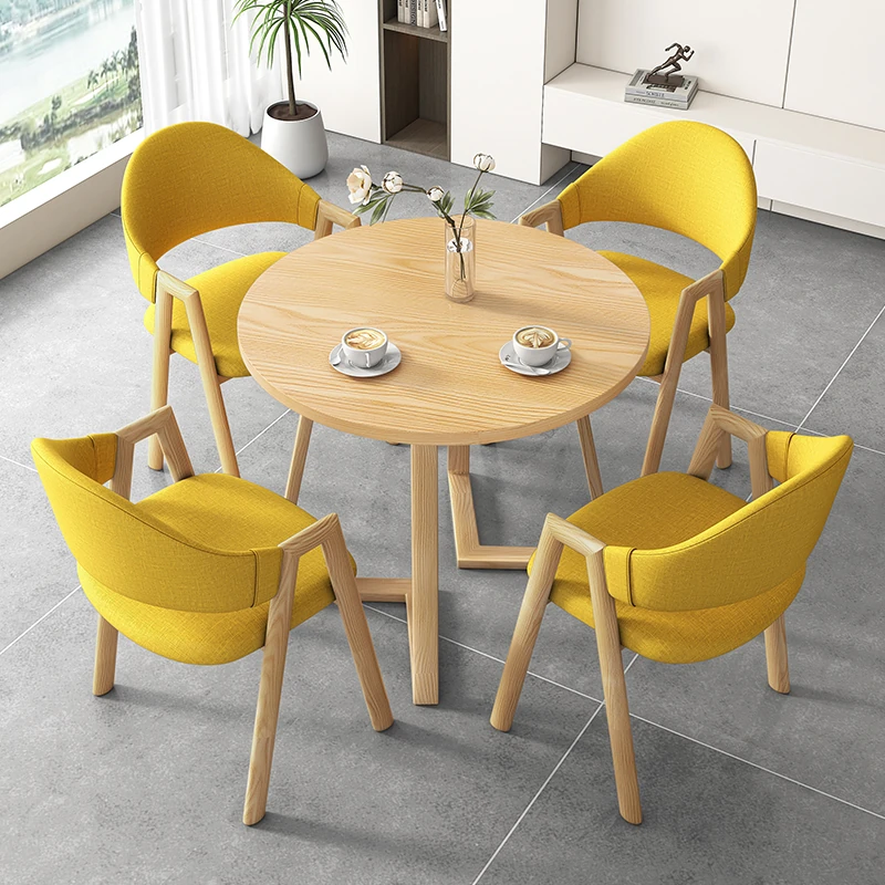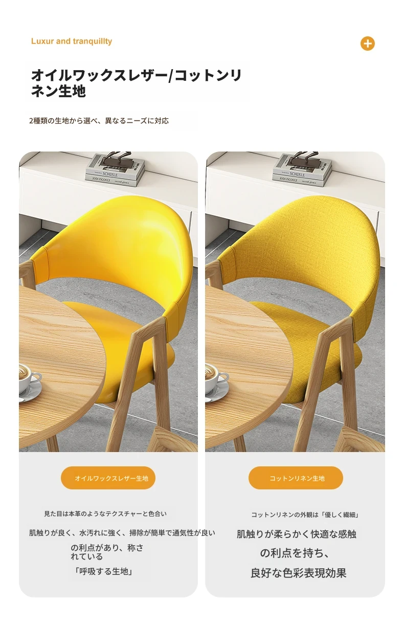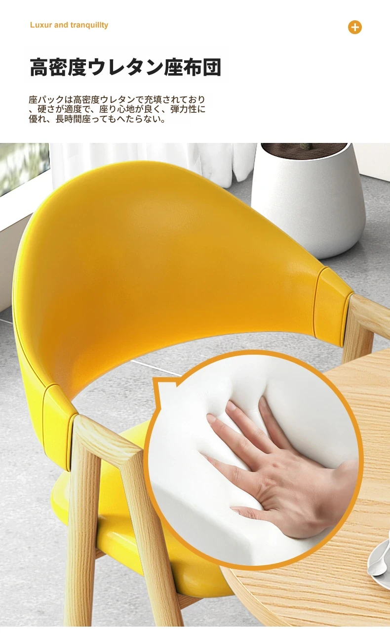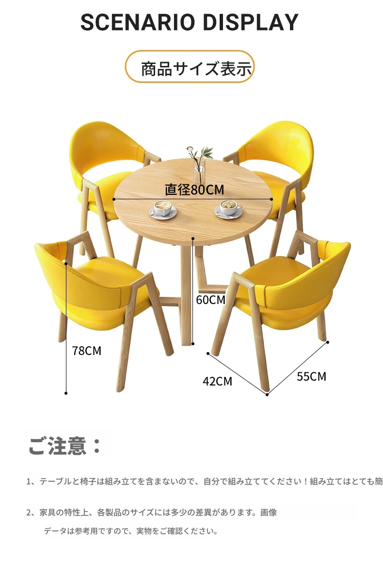 80円卓+4黄色布椅-ナチュラル色脚
