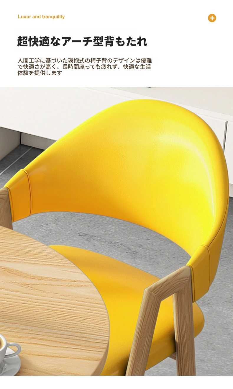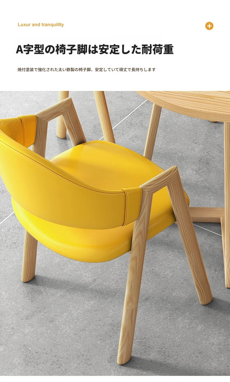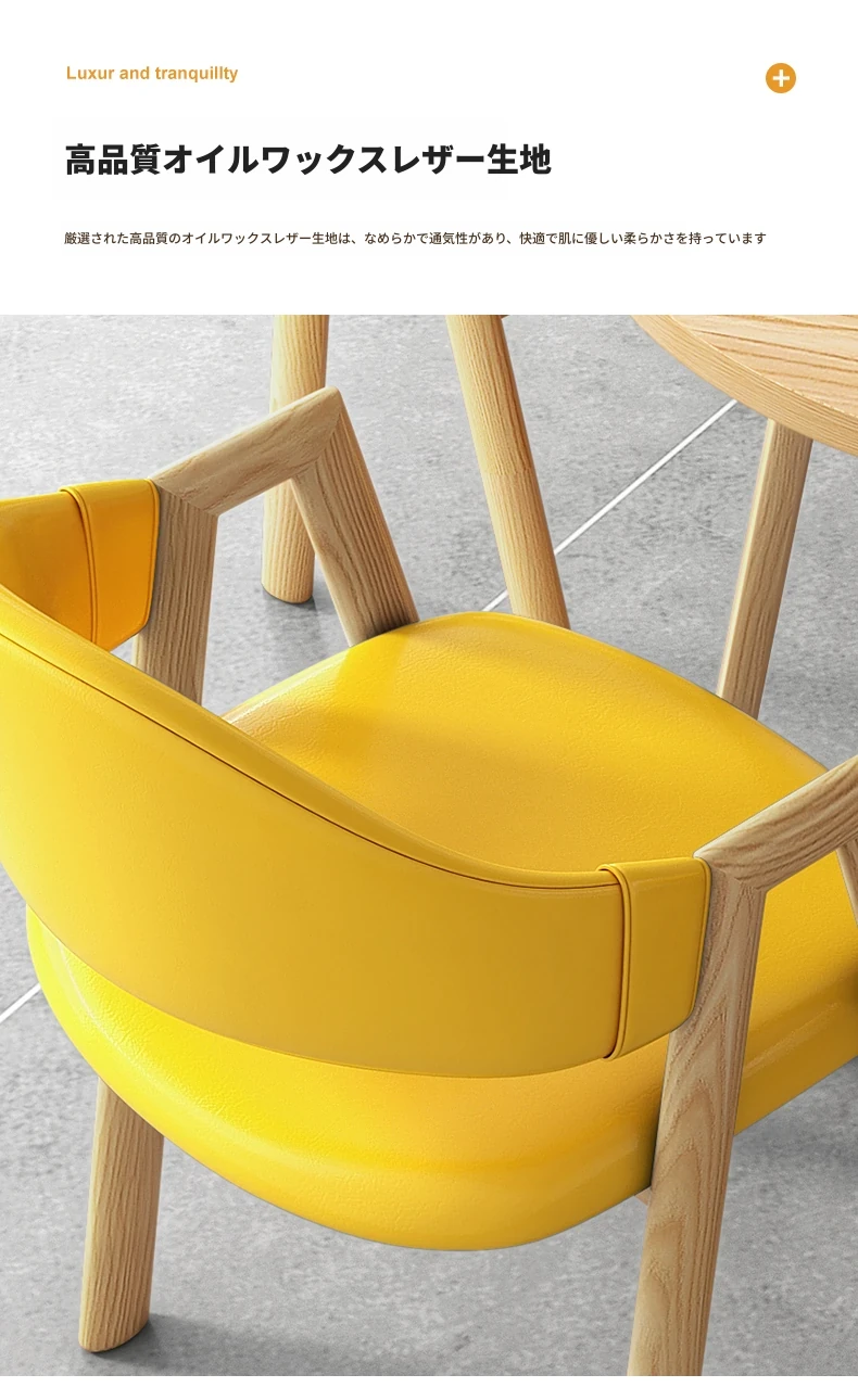 80円卓+4黄色革椅-ナチュラル色脚