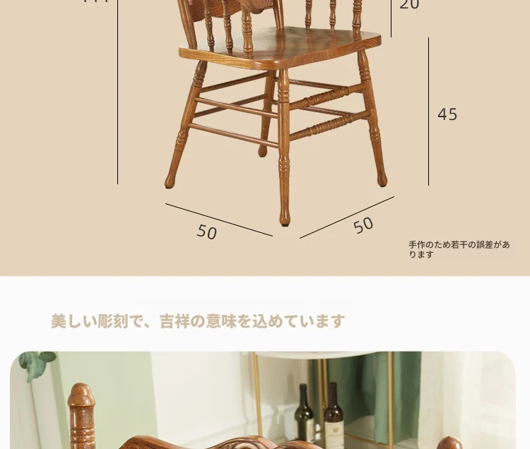 森家の温莎椅子 - ヴィンテージスタイルのアメリカン&フレンチデザイン、厳選された天然木材を使用したダイニングチェア。おしゃれな民宿や自宅にぴったりの背もたれ付きチェアで、居心地の良い空間を演出します!