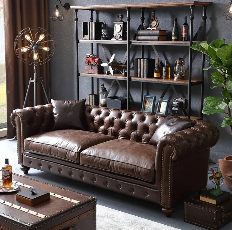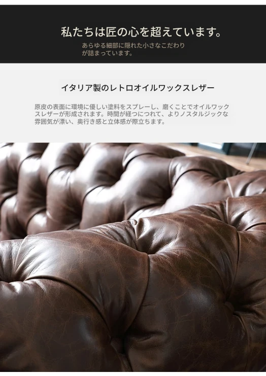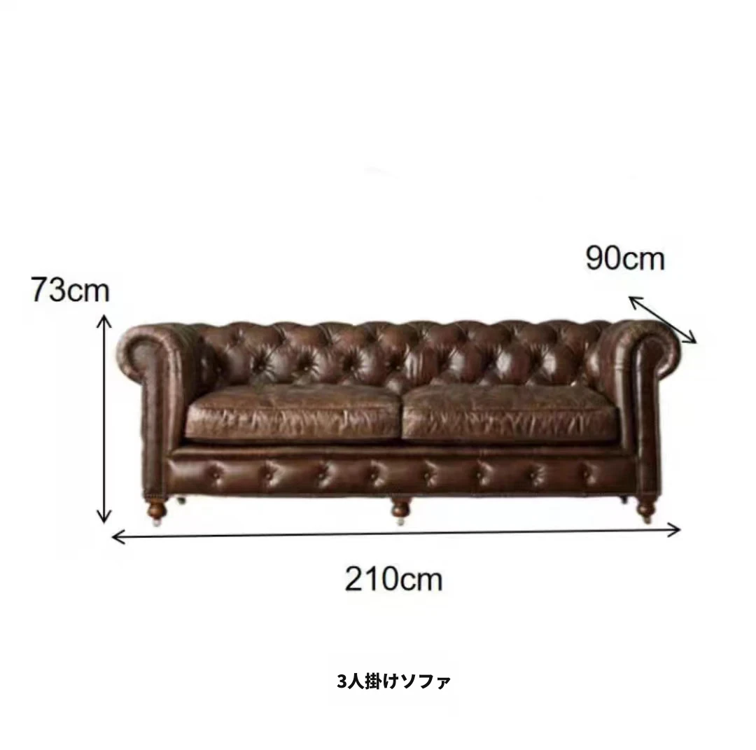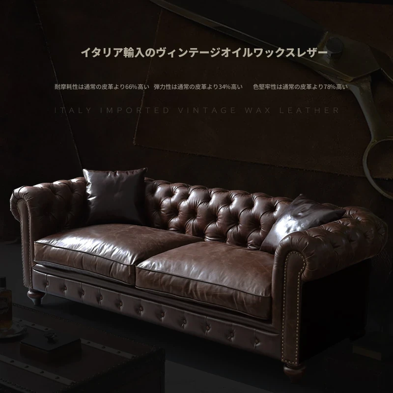 ヴィンテージ風アメリカンソファー|3人掛け・ラッチデザイン|インダストリアルスタイル・オイルワックスレザー使用|本革・トップグレード牛革|イタリアンスタイルのリビングに最適!