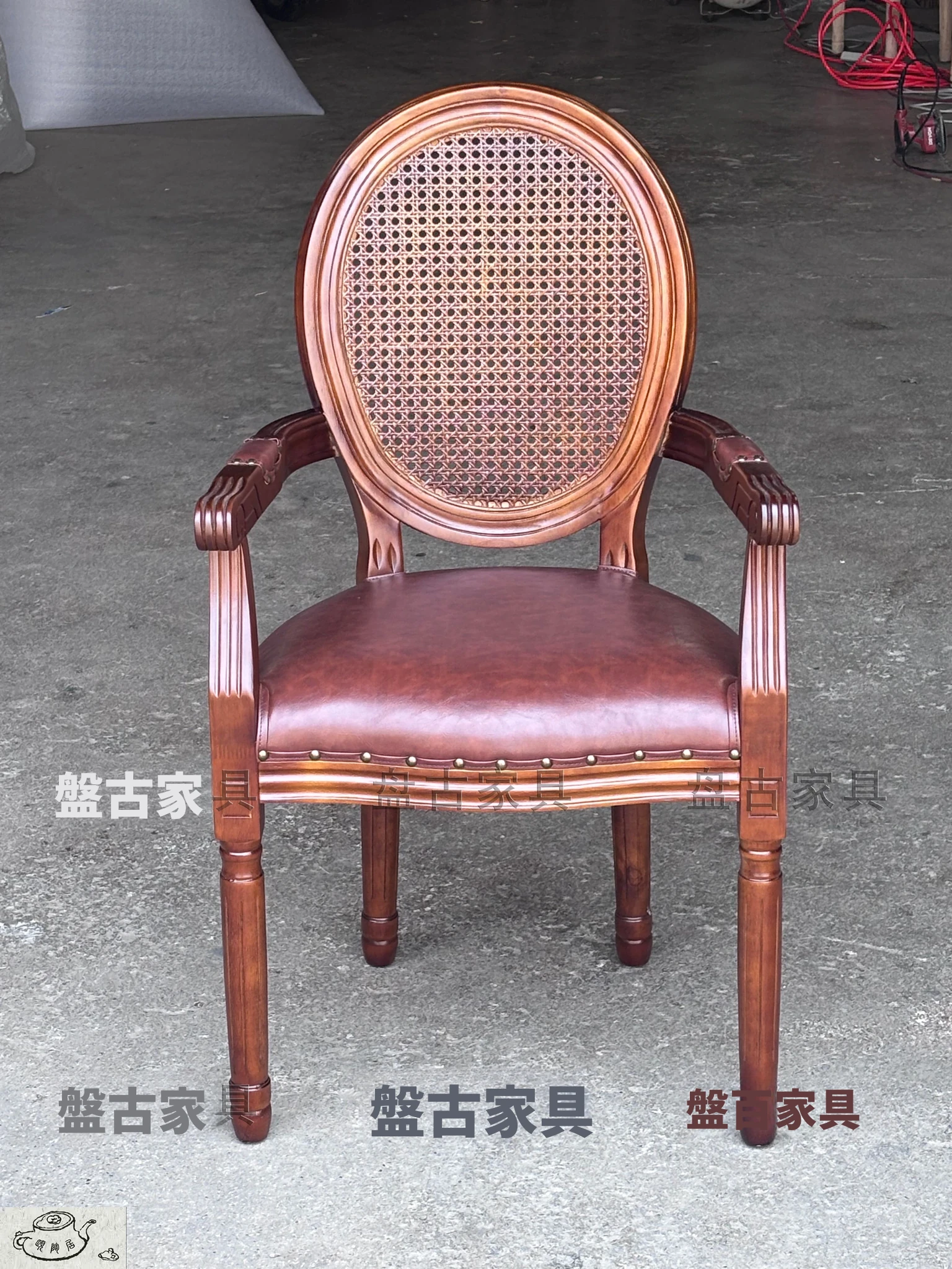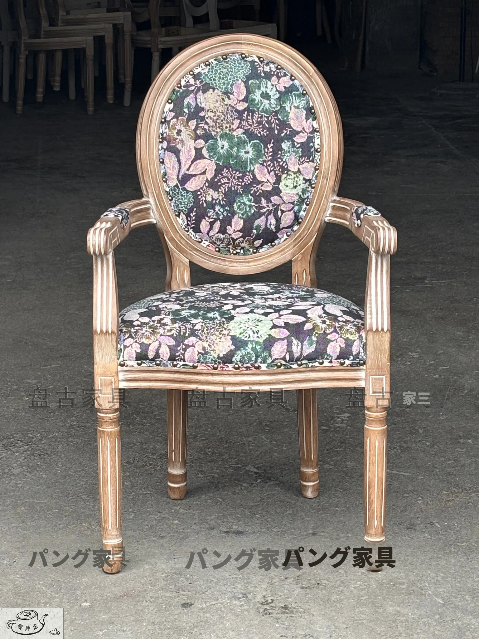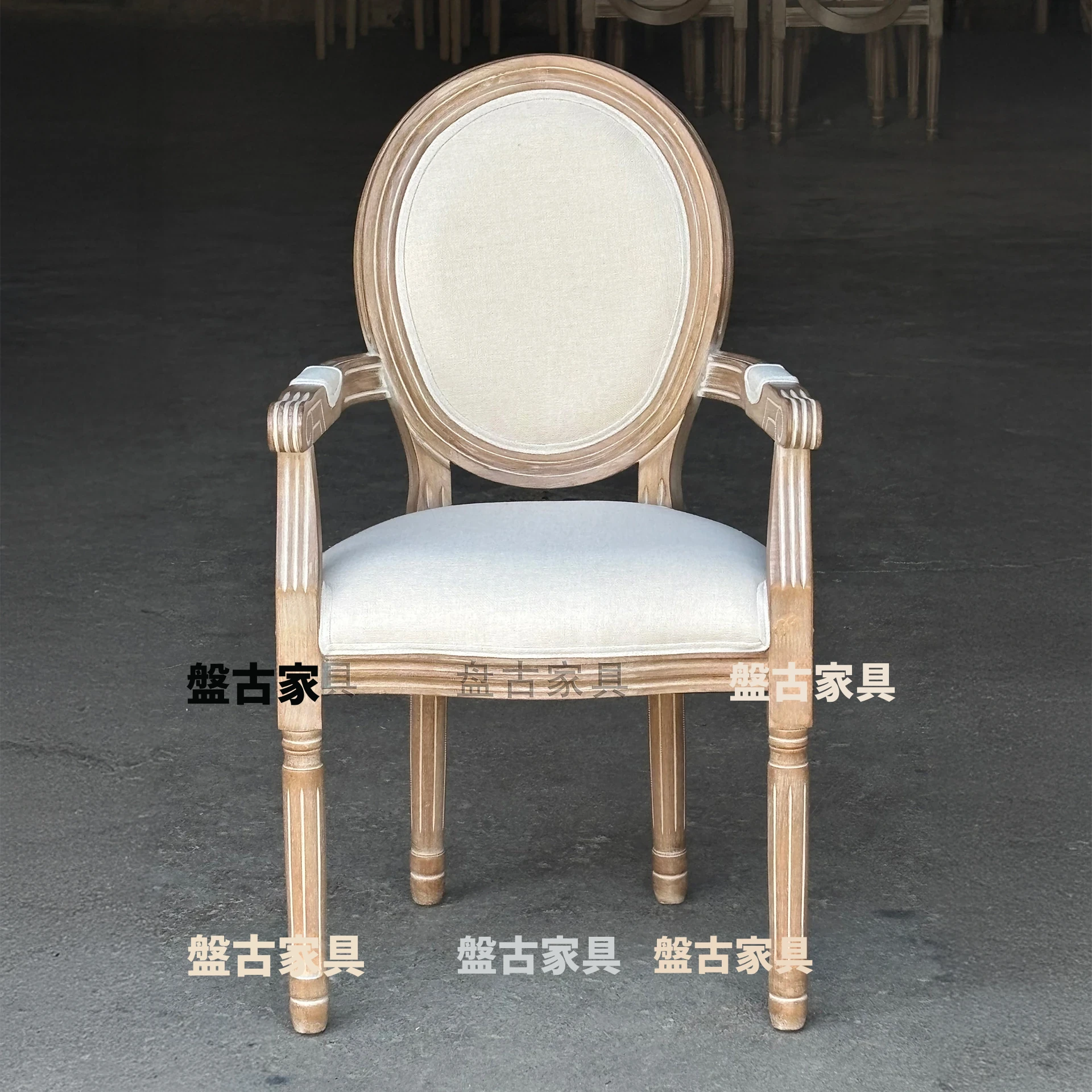 ヴィンテージ風の欧州スタイルダイニングチェア - 本格的なウッド素材使用、レトロなデザインが魅力!リラックスできる背もたれとアームレスト付き。特価でお求めやすく、美容室や家庭にぴったりの一脚です。