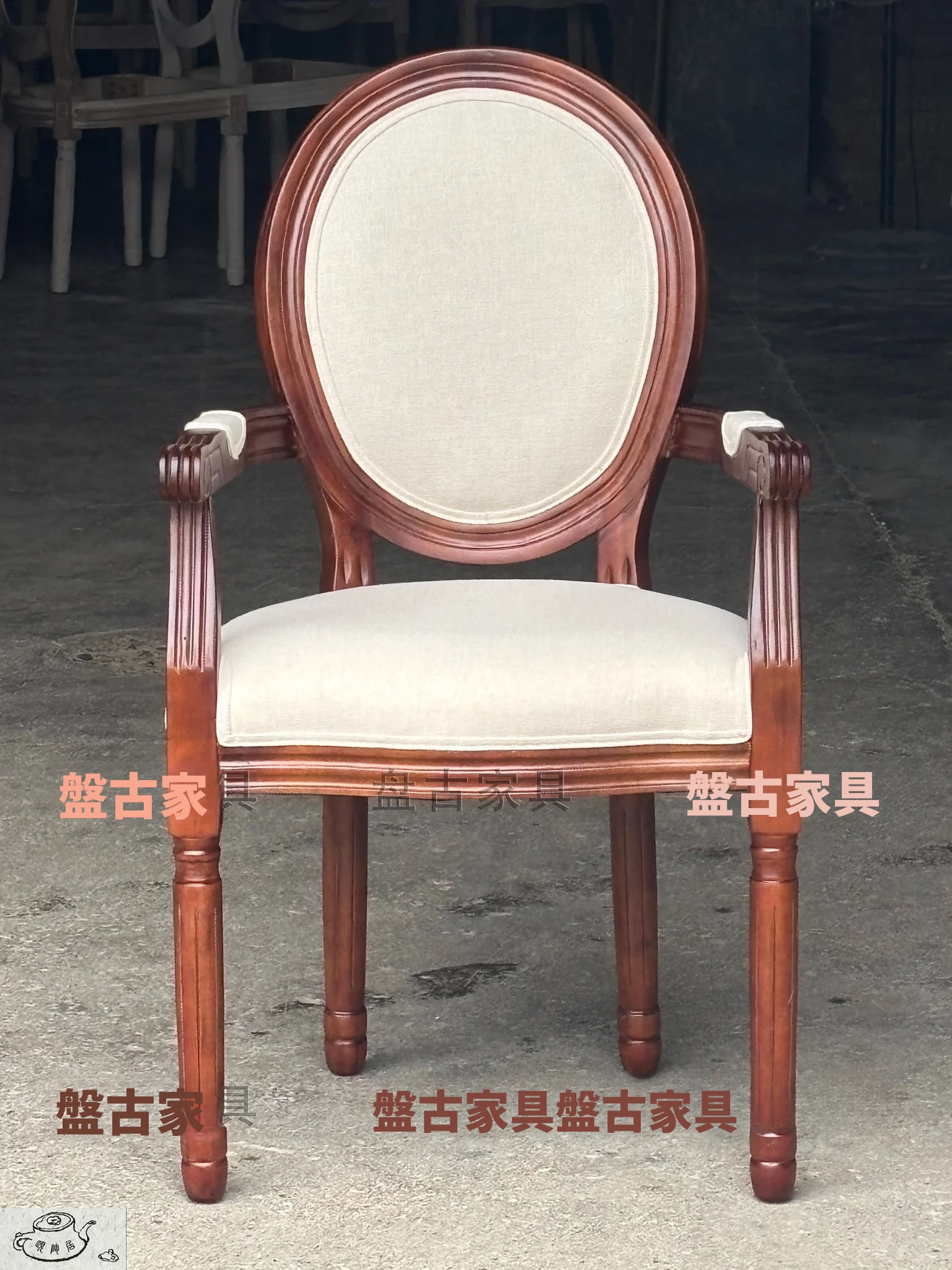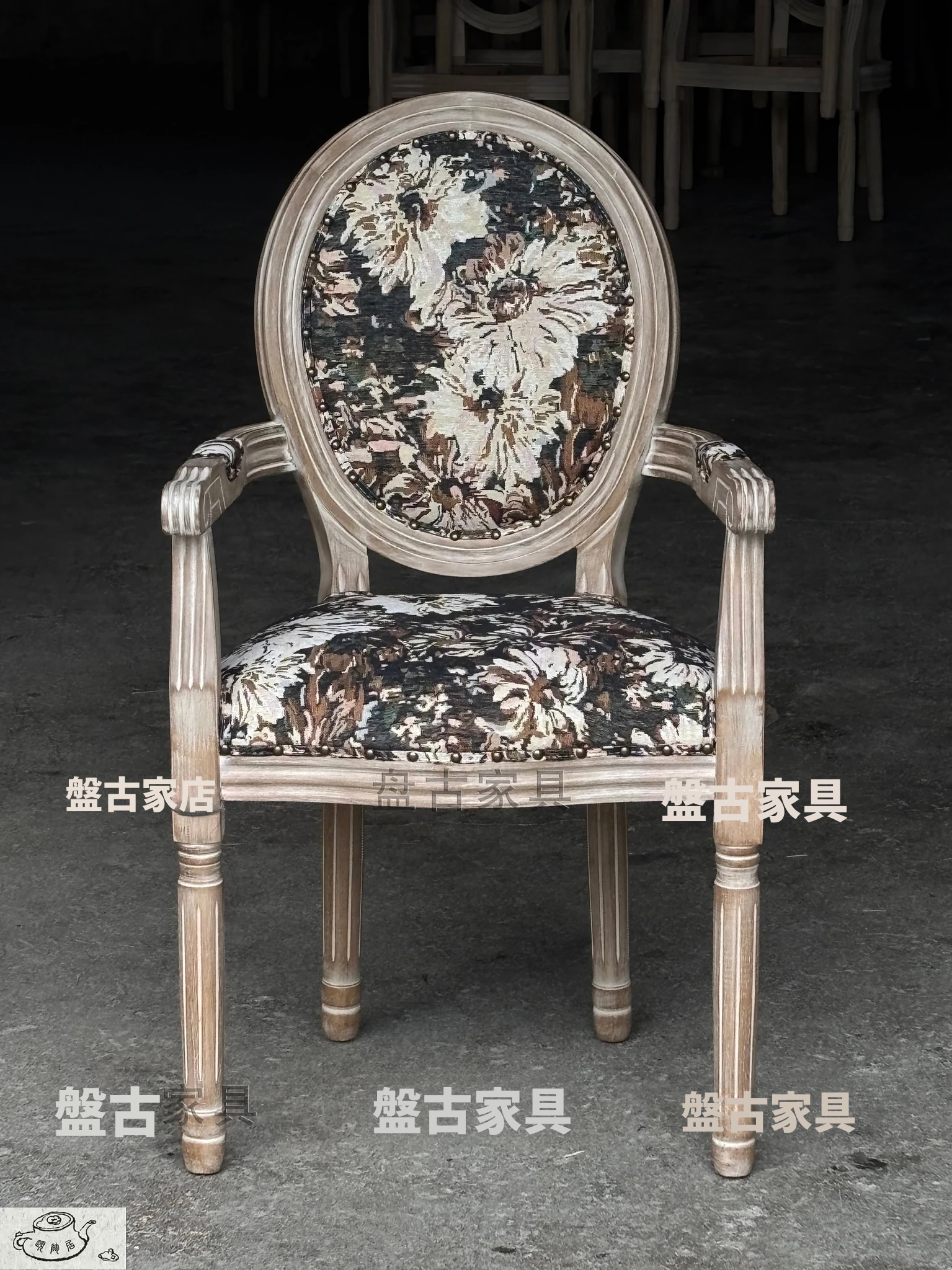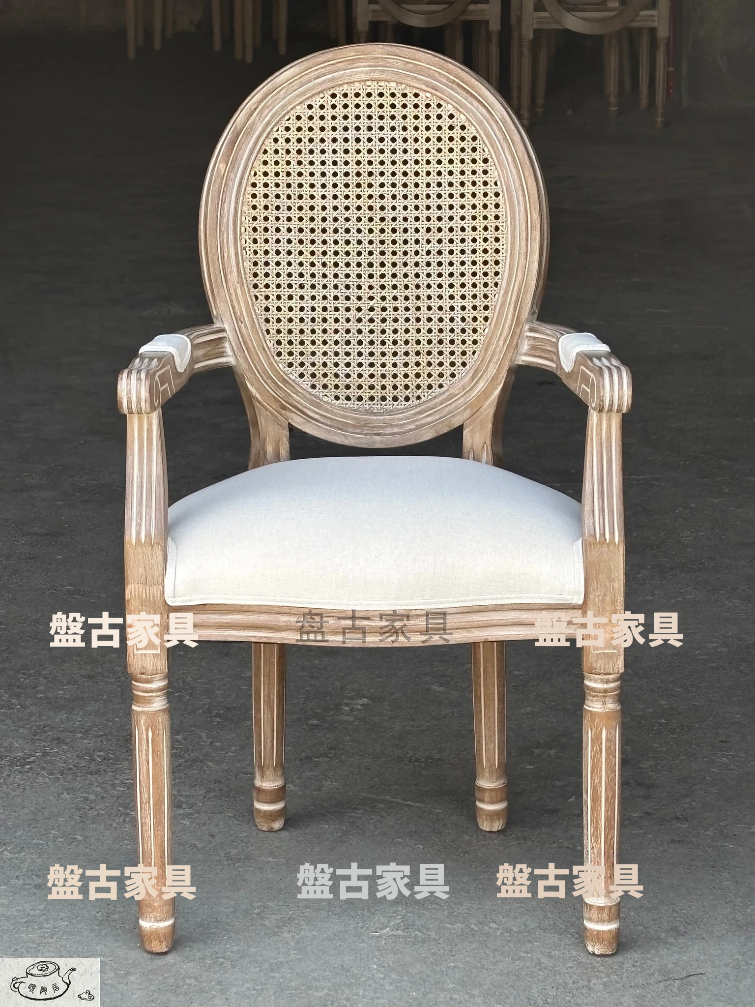 ヴィンテージ風の欧州スタイルダイニングチェア - 本格的なウッド素材使用、レトロなデザインが魅力!リラックスできる背もたれとアームレスト付き。特価でお求めやすく、美容室や家庭にぴったりの一脚です。