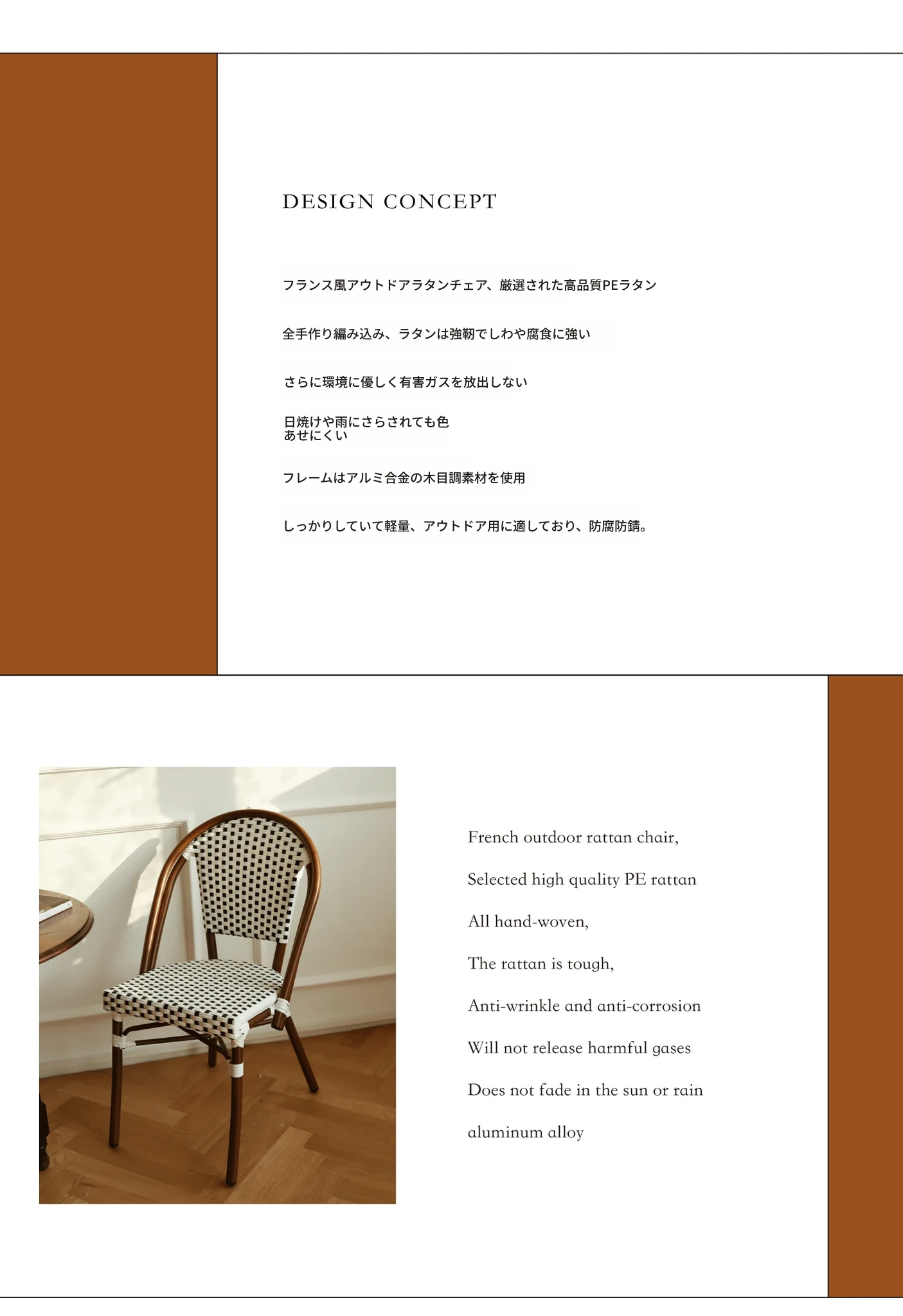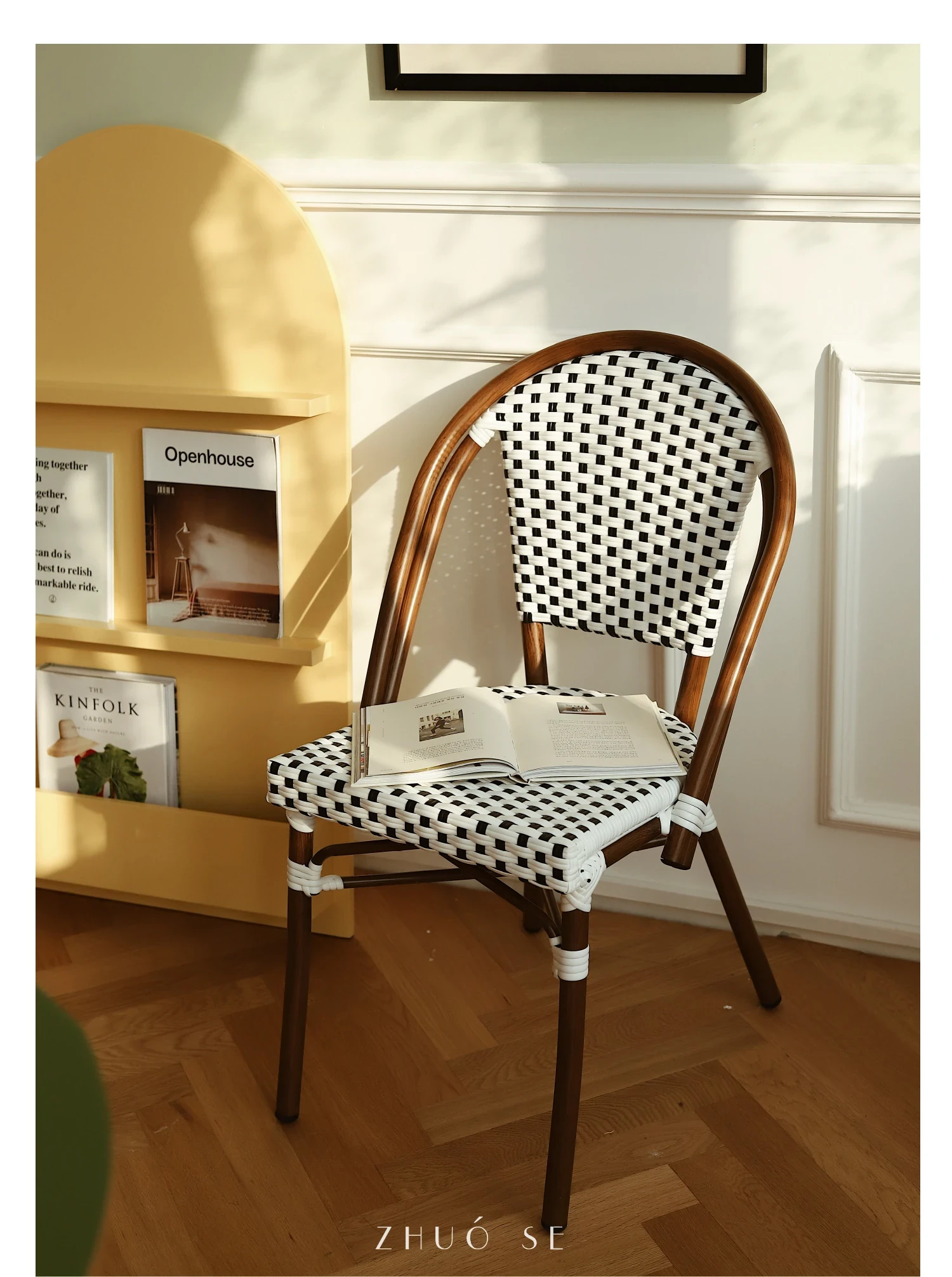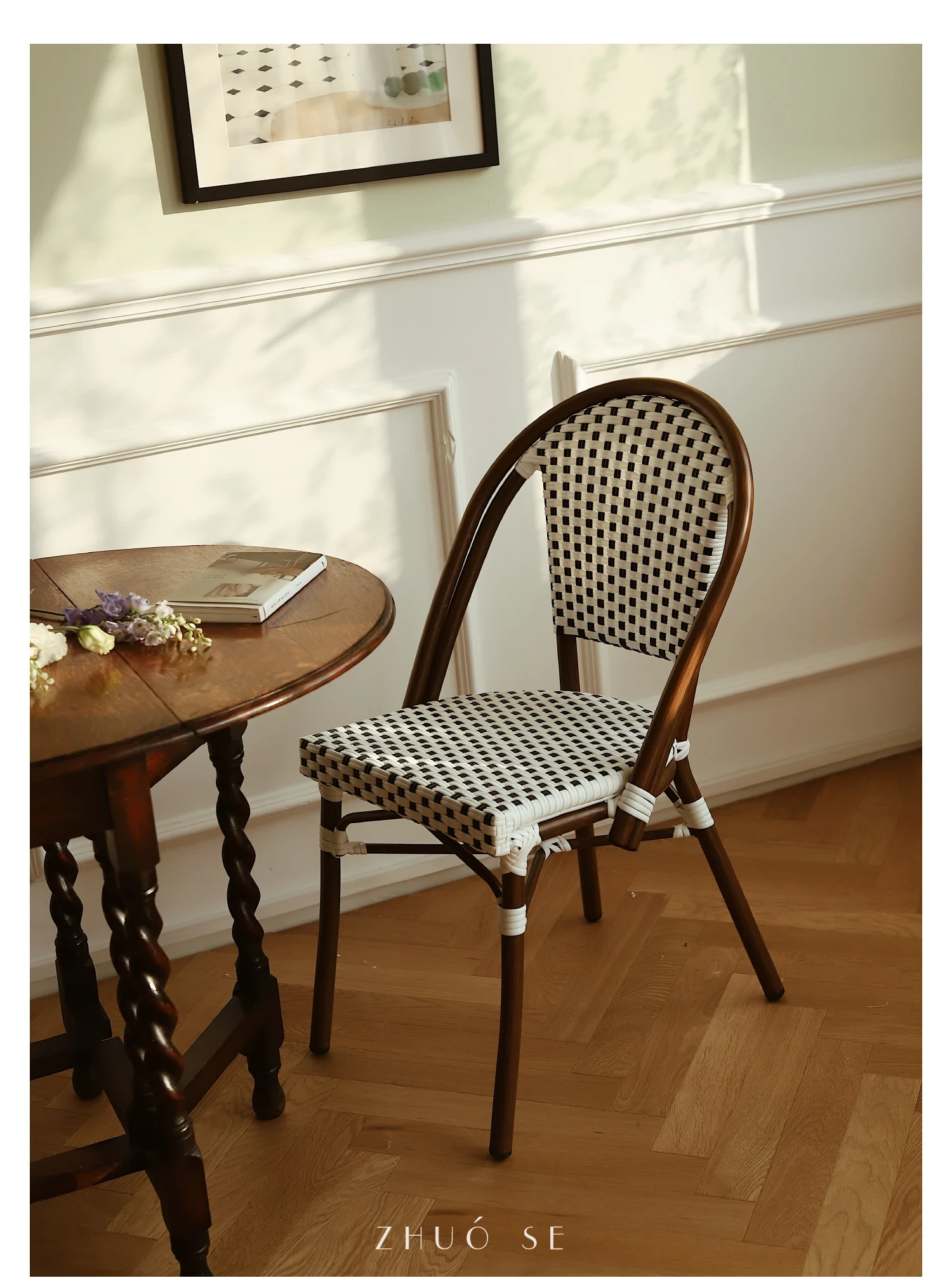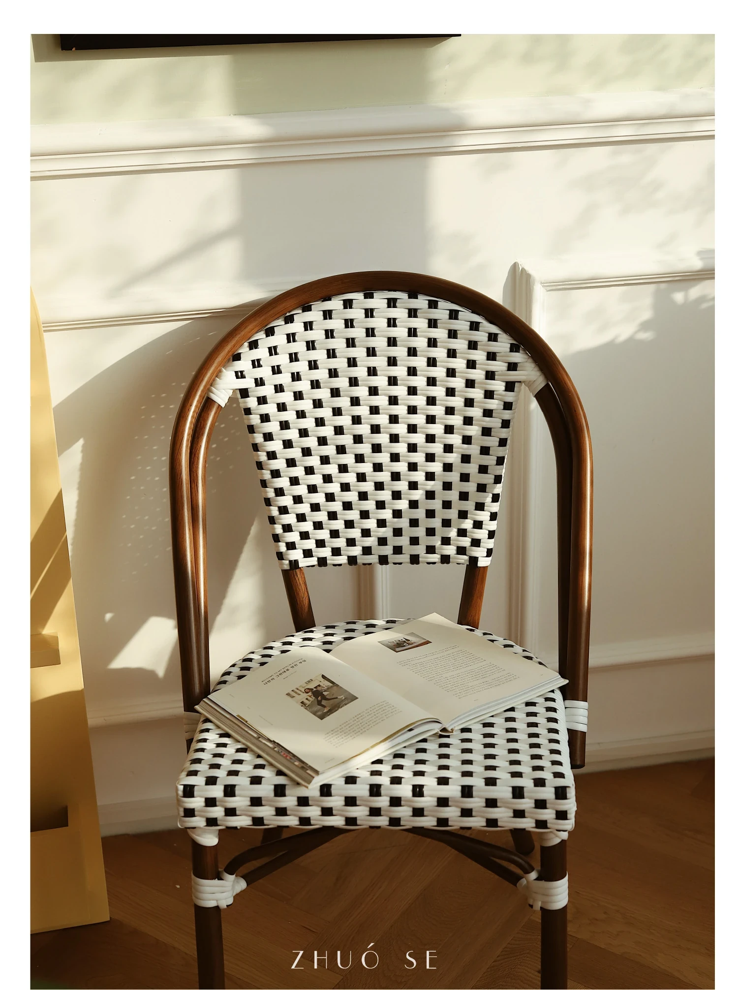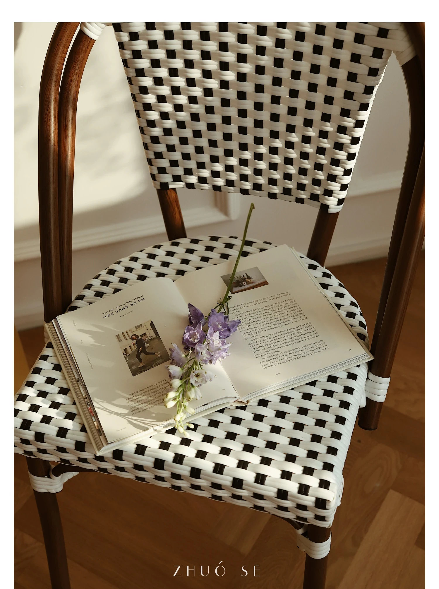 ZHUOSEフランス風アウトドアラウンジチェア 藤編みデザイン 北欧シンプルスタイル 家庭用バルコニーリラックスチェア カフェにもぴったり!