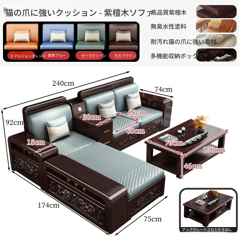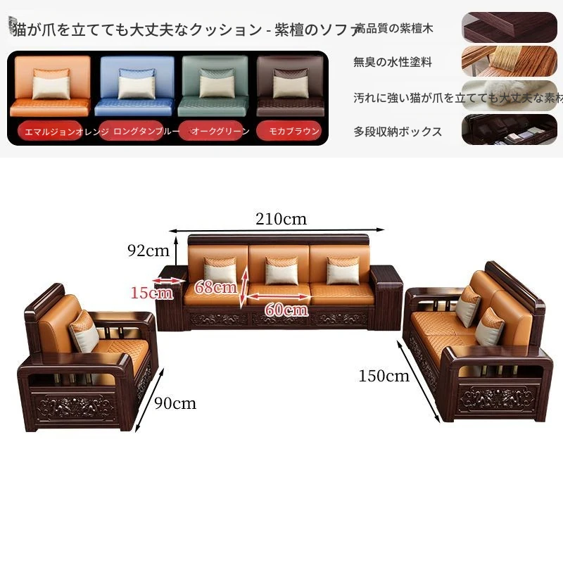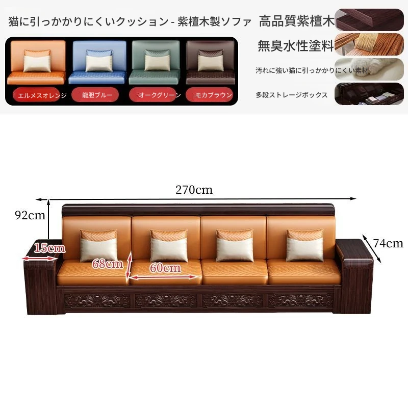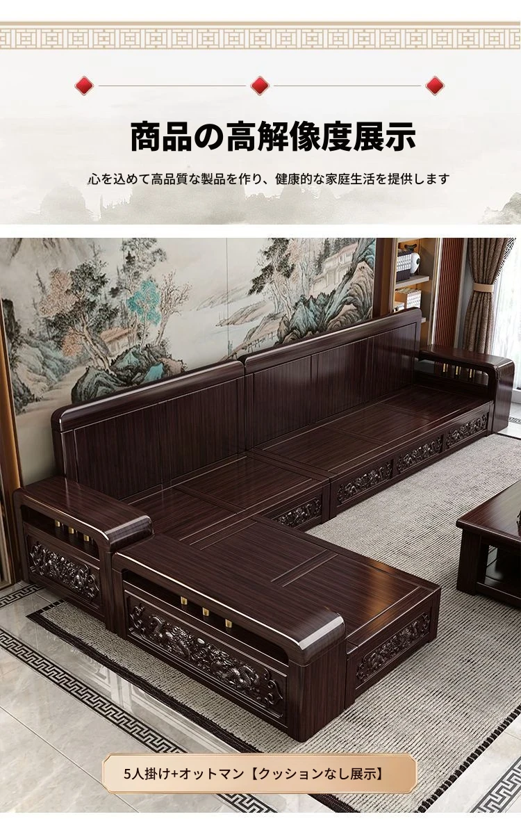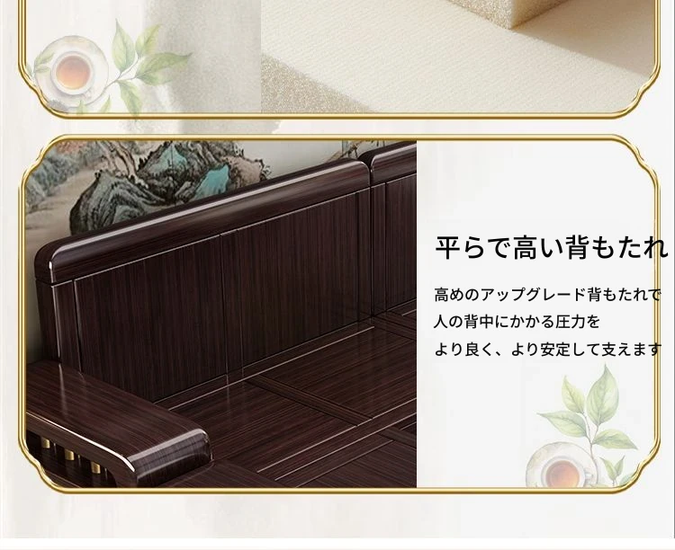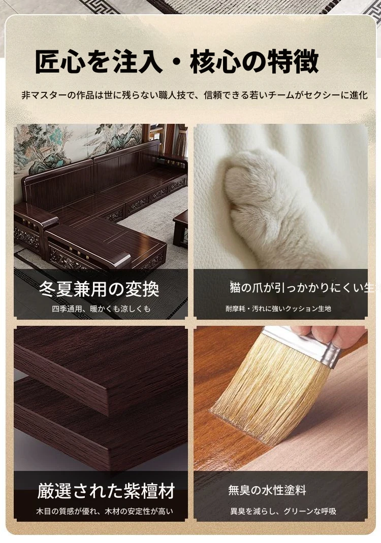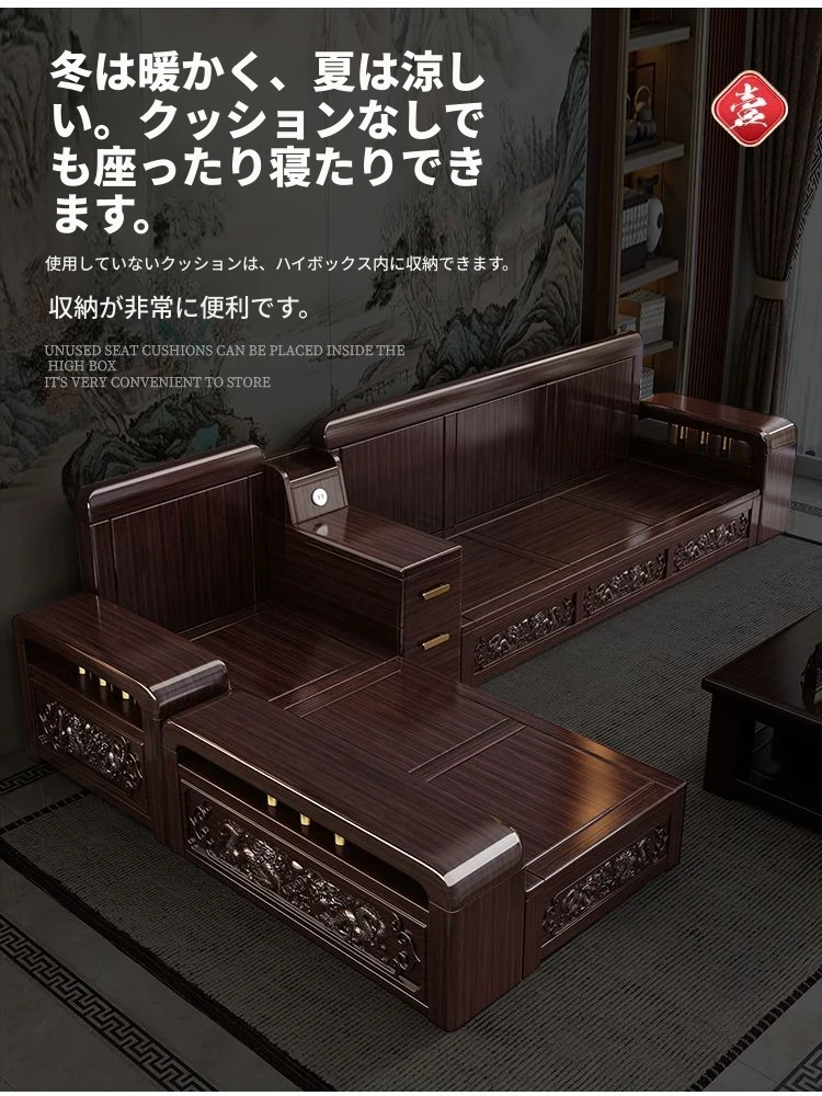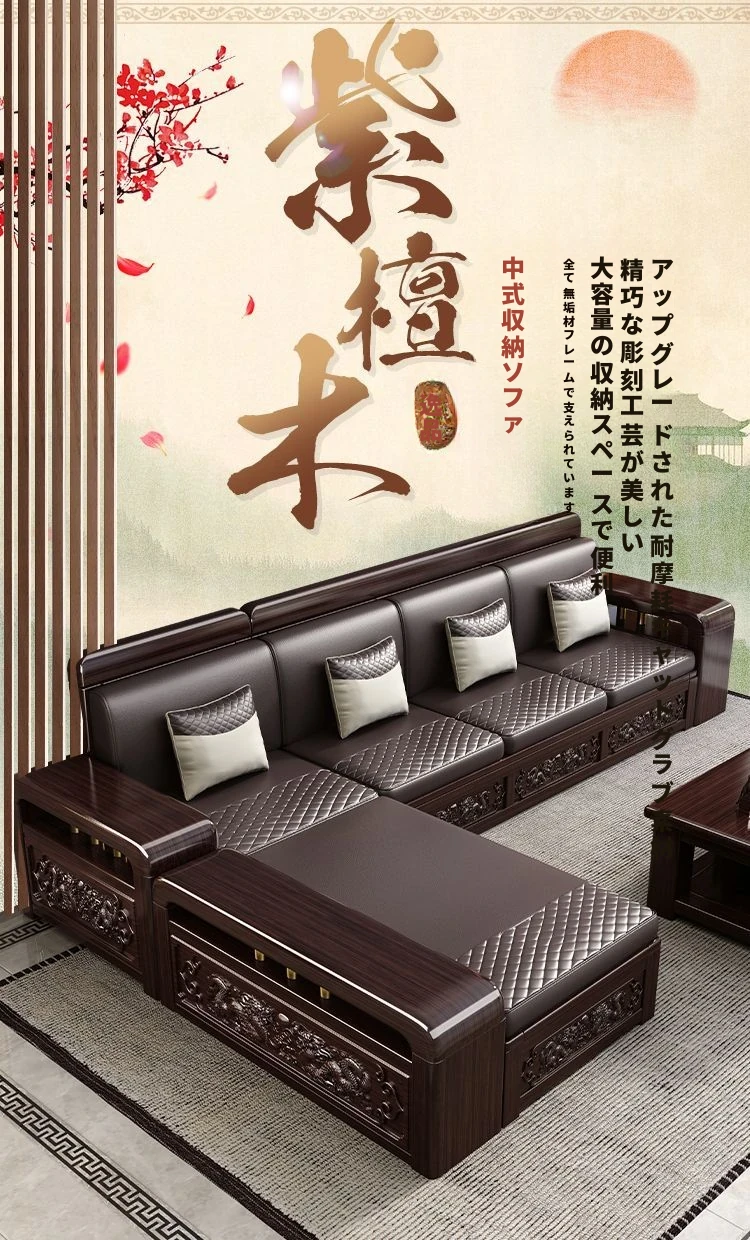 新中式デザインの紫金檀木製ソファセット|冬夏兼用・収納機能付き|おしゃれで快適なリビングに最適|家族の団らんや来客にもぴったり!