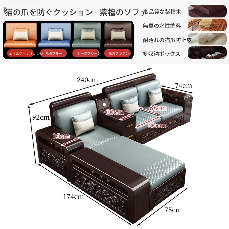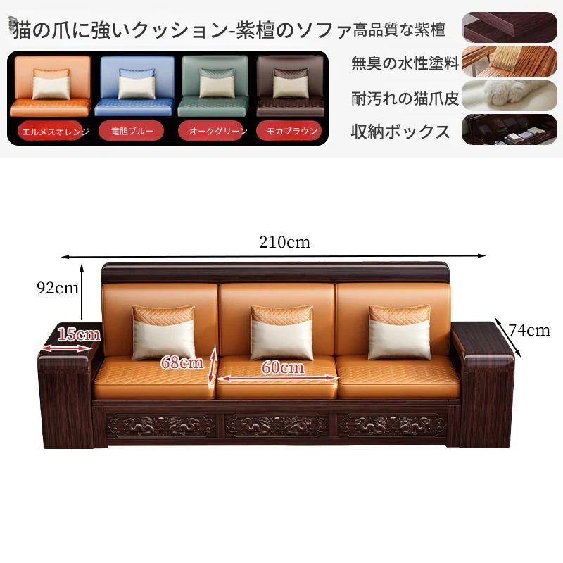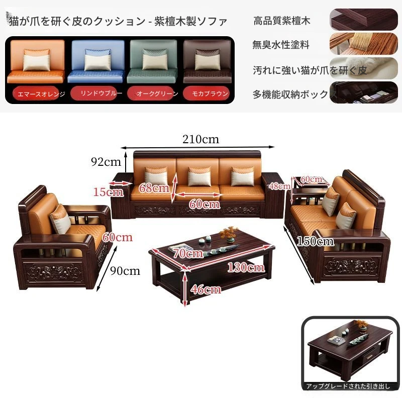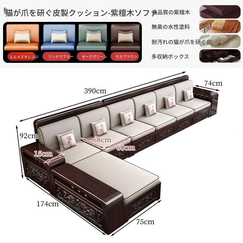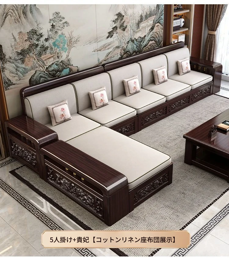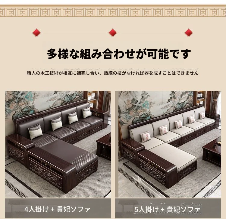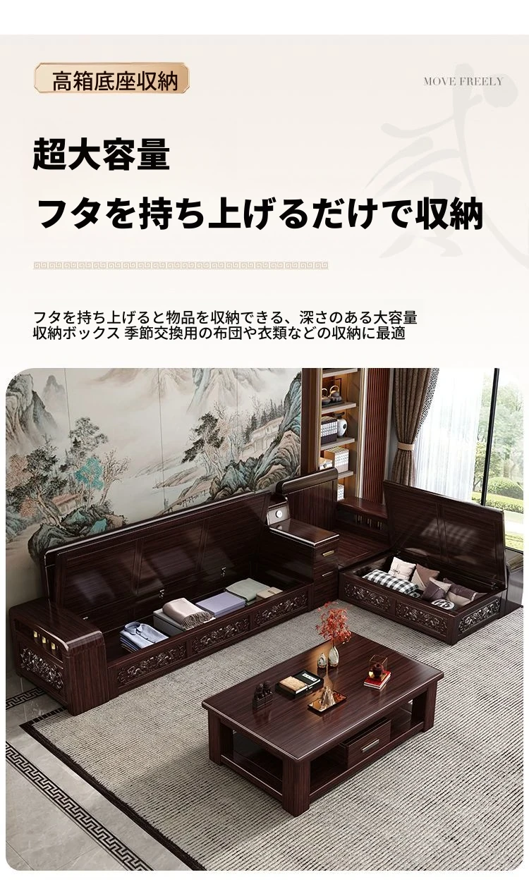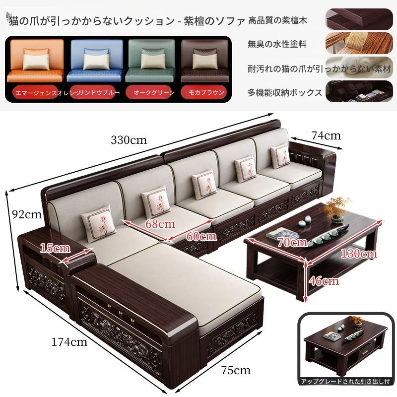 新中式デザインの紫金檀木製ソファセット|冬夏兼用・収納機能付き|おしゃれで快適なリビングに最適|家族の団らんや来客にもぴったり!