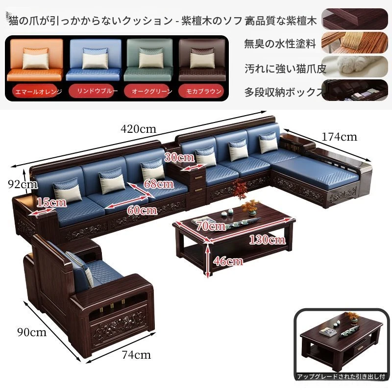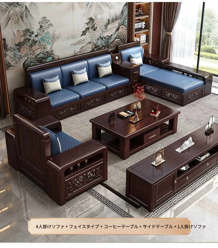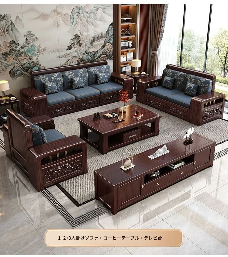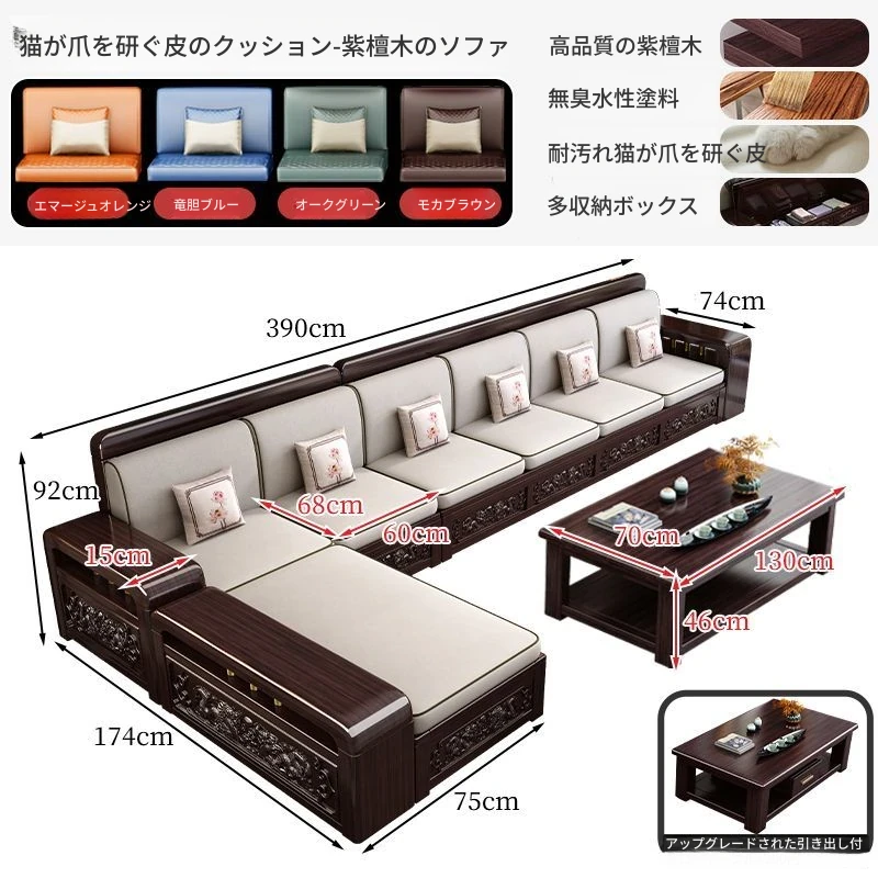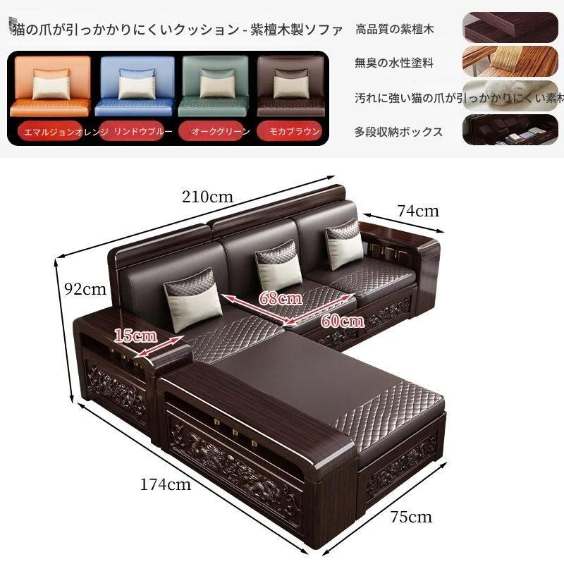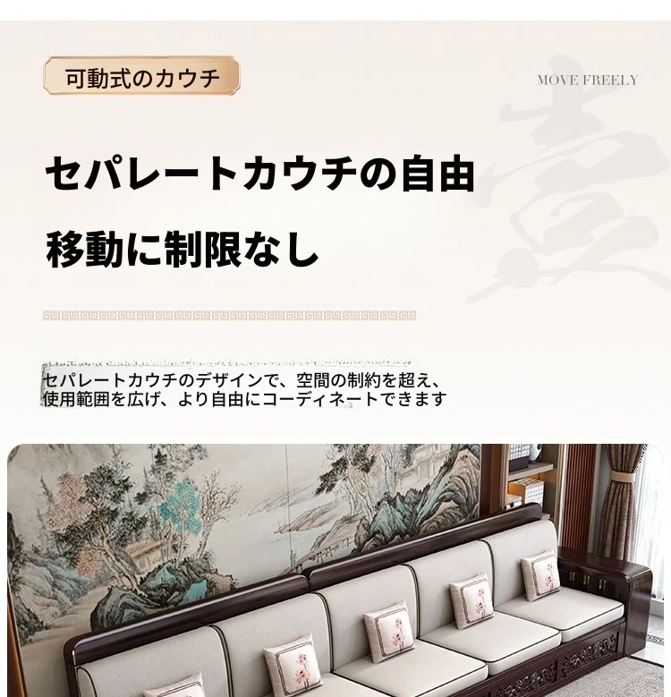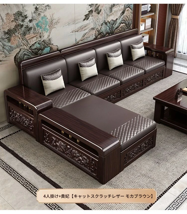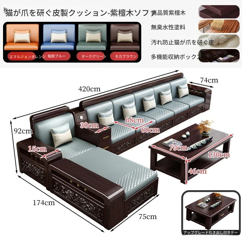 新中式デザインの紫金檀木製ソファセット|冬夏兼用・収納機能付き|おしゃれで快適なリビングに最適|家族の団らんや来客にもぴったり!