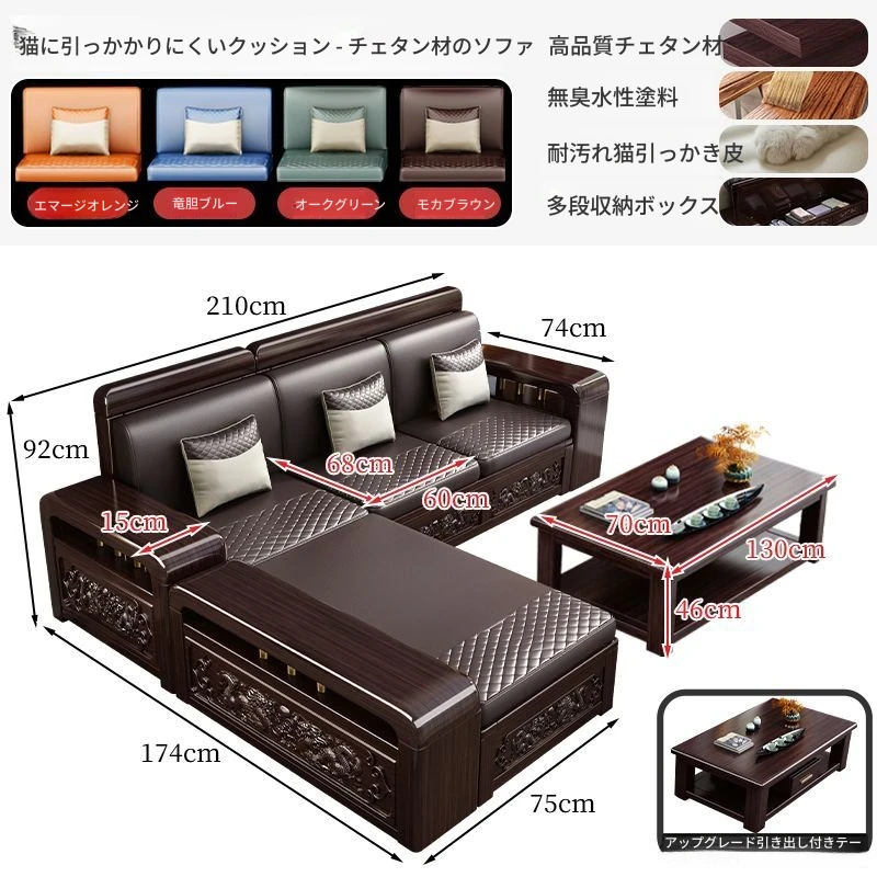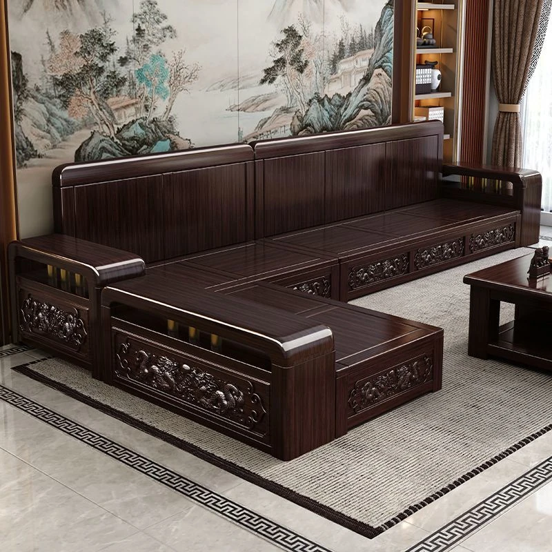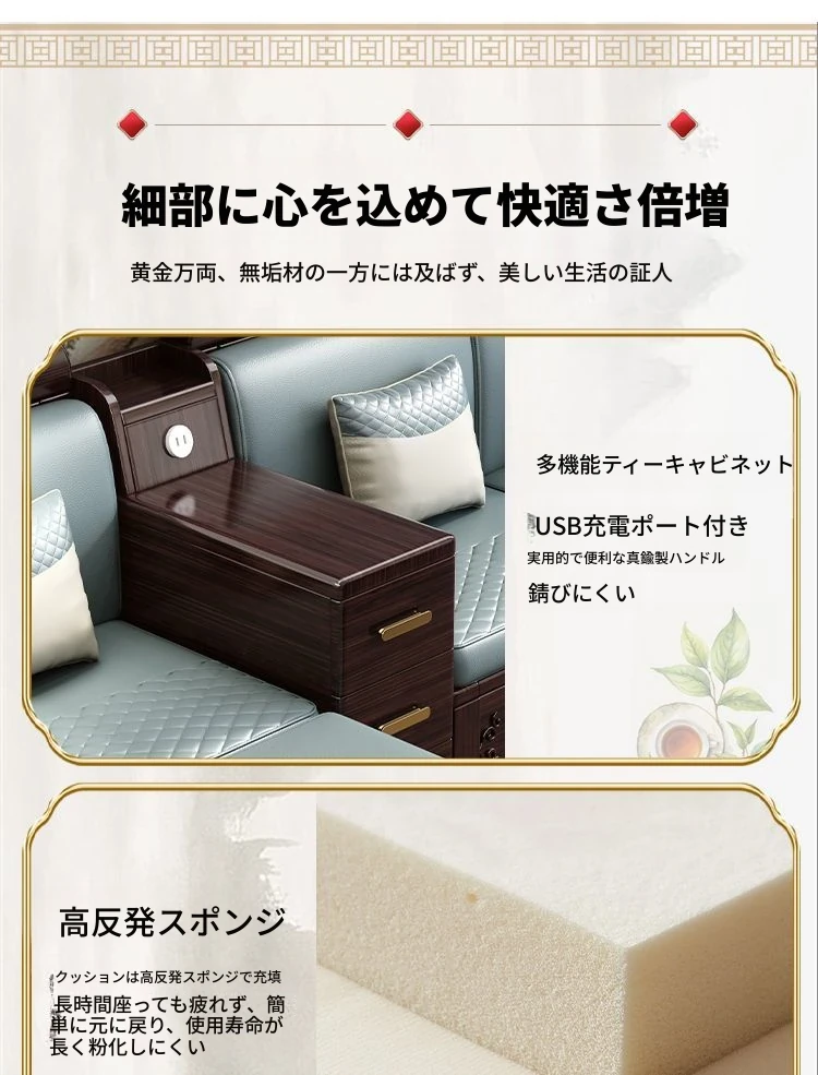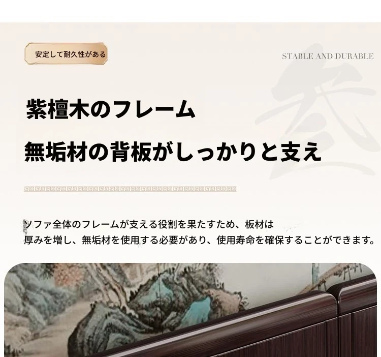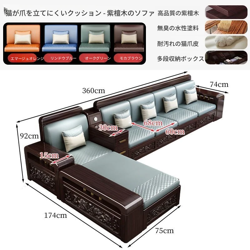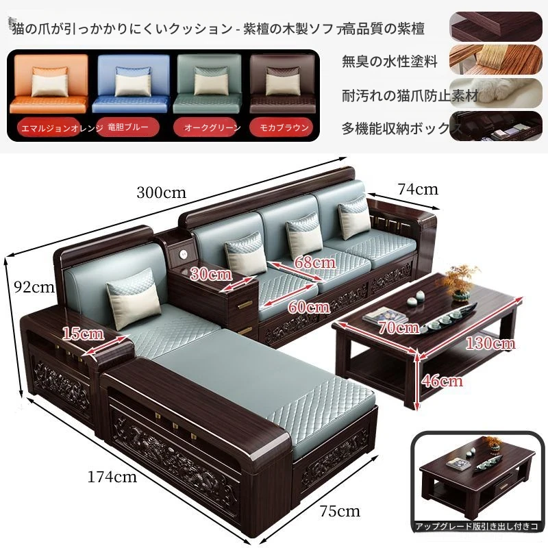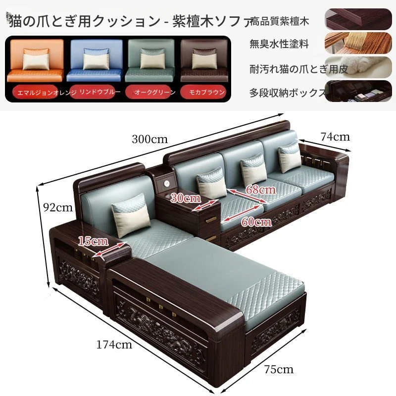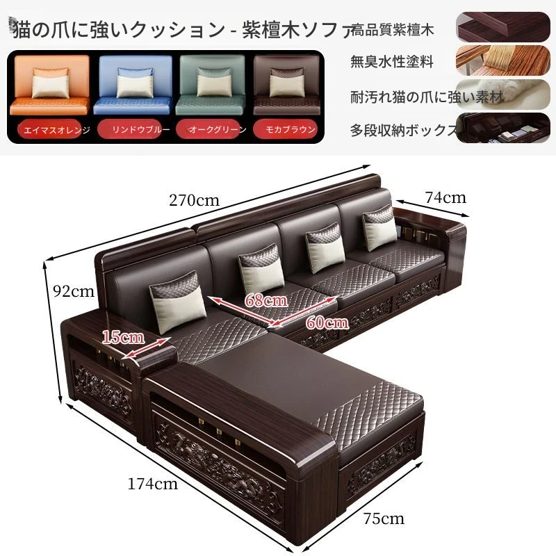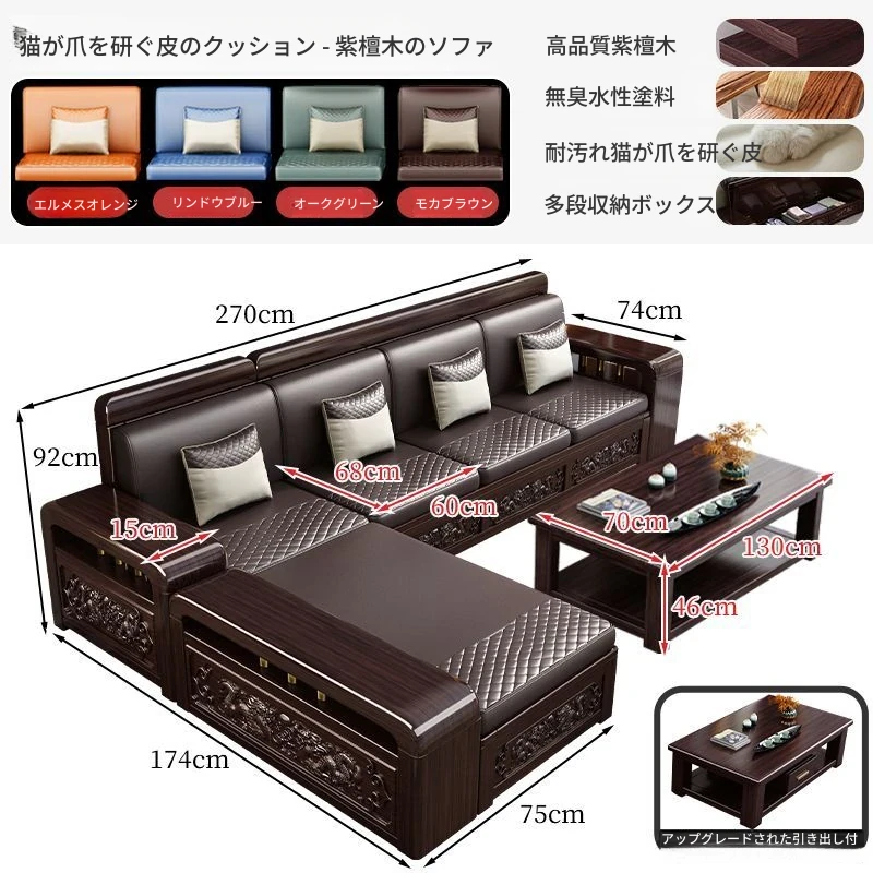 新中式デザインの紫金檀木製ソファセット|冬夏兼用・収納機能付き|おしゃれで快適なリビングに最適|家族の団らんや来客にもぴったり!