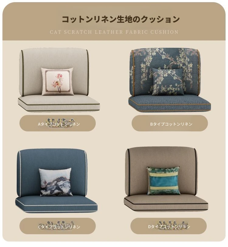【四人用+貴妃ソファ】/綿麻-テクノロジー布-猫の爪痕防止布カバー【十センチ座布団】