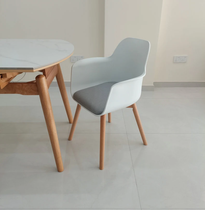 高級感溢れる実木製ダイニングチェア - 4Sショールーム、商業施設、ホテル、モデルルームに最適な会議・商談用チェアセット。おしゃれな空間を演出し、快適なひとときを提供します。