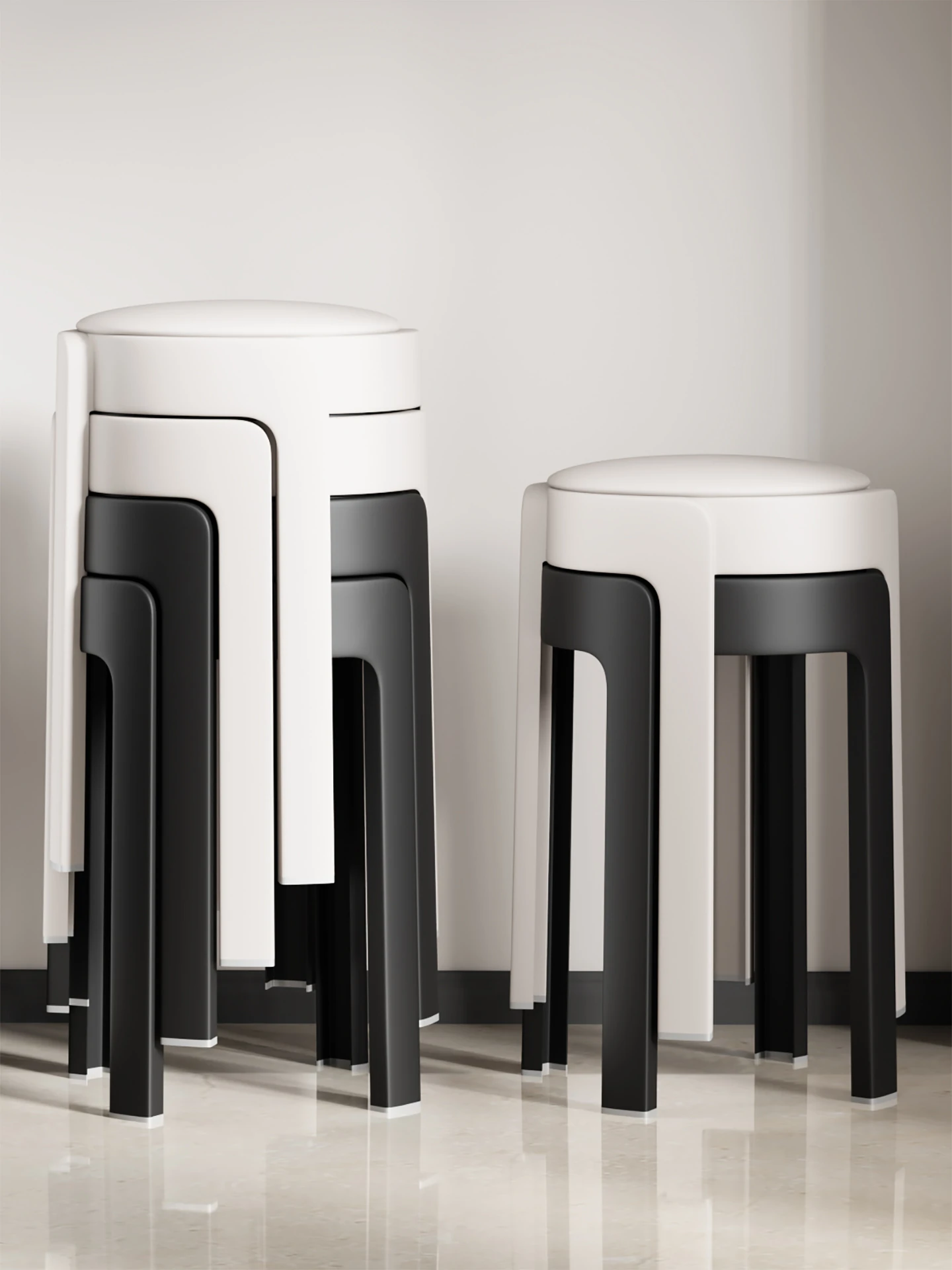 軽やかでスタイリッシュな家用円形スツール!北欧デザインのミニマルな椅子は、ダイニングやリビングに最適。重ねて収納できる便利さで、スペースを有効活用!おしゃれで機能的な一品をお見逃しなく!