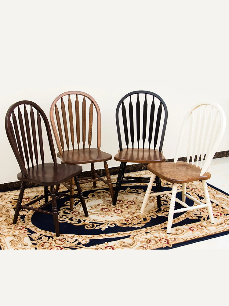 ヴィンテージ風アメリカンウィンザー椅子 - 高品質な無垢材使用、背もたれ付きで快適なダイニングチェア。フレンチスタイルの孔雀椅子、レトロな雰囲気でおしゃれな家庭用家具!
