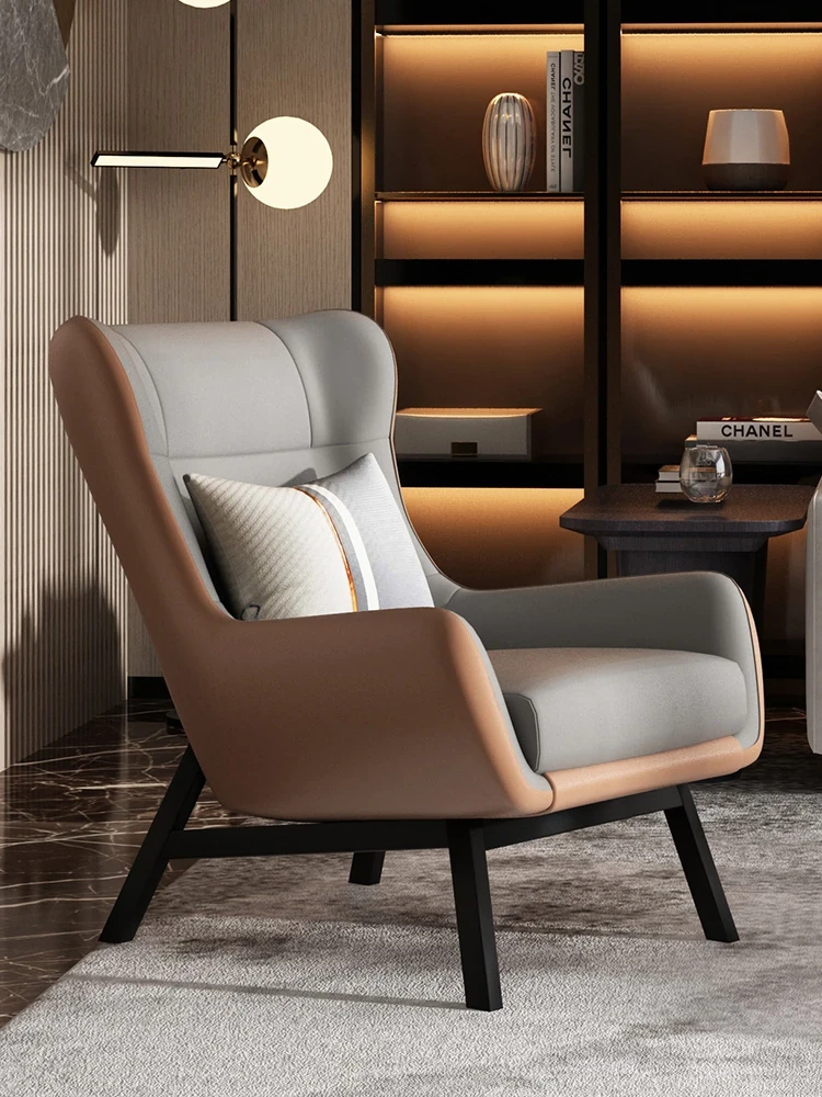 イタリアンラグジュアリーデザインのシンプルモダンな一人用リラックスチェア - ヴィラのリビングルームに最適な接客・商談用チェア!洗練されたスタイルで、心地よいひとときをお届けします。