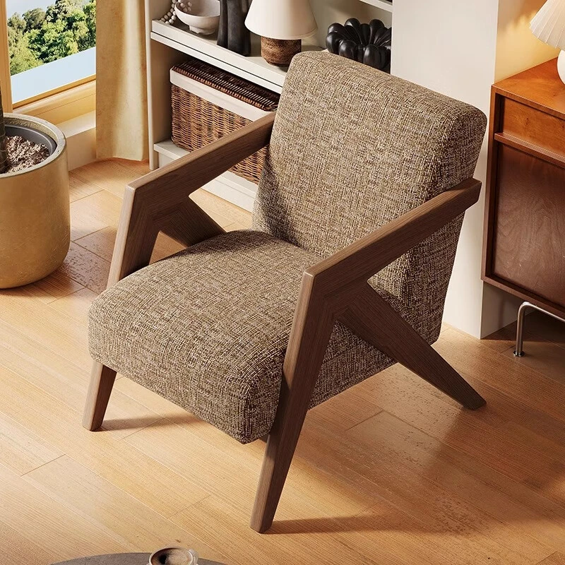新作2025年モデル 北欧スタイルの一人掛けソファチェア - リラックスできる原木製、寝室やリビングにぴったり!バルコニーにも最適な和風デザインのラウンジチェアで、心地よい時間をお楽しみください。