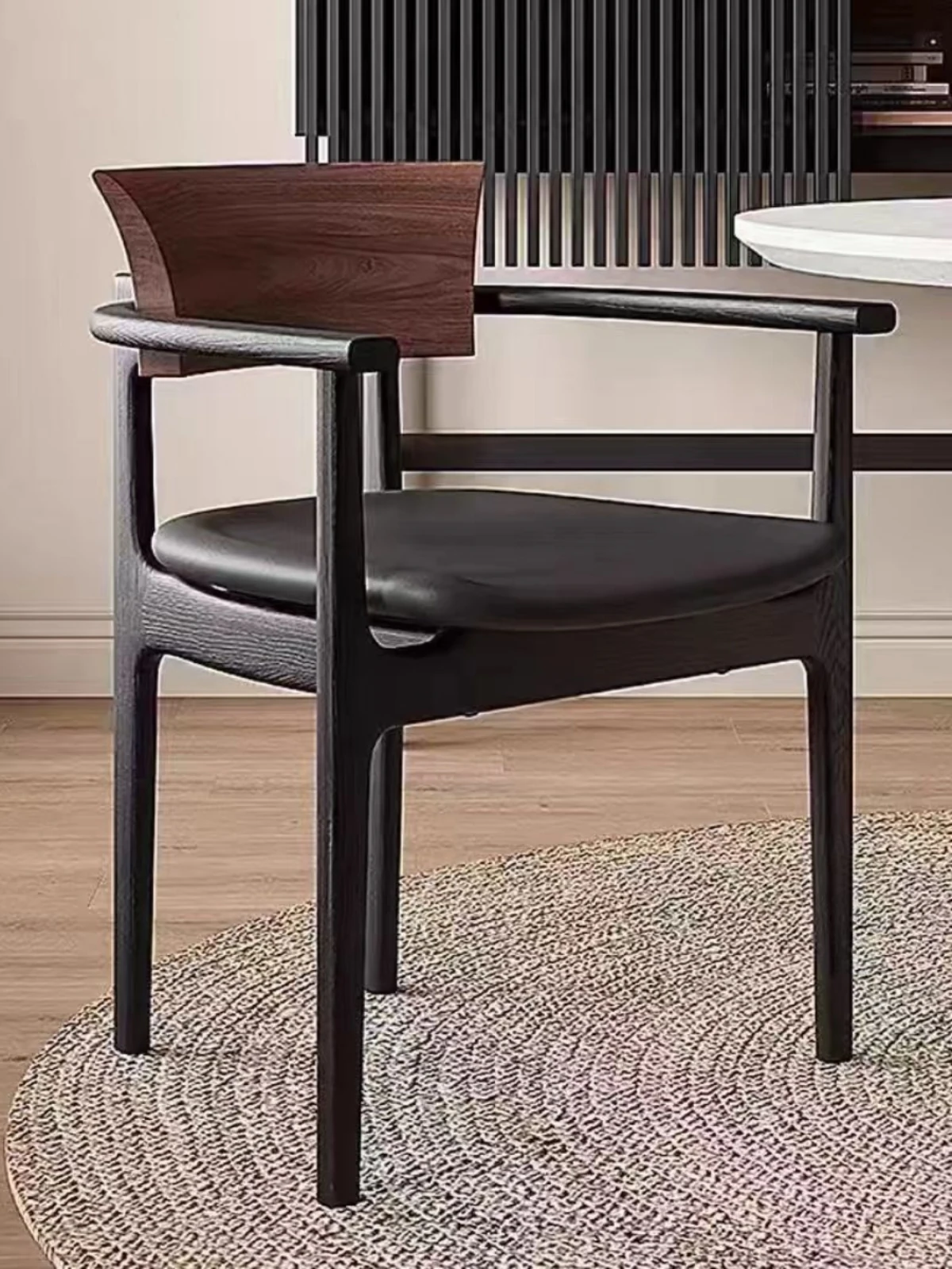 Vintage Solid Wood Black Dining Chair - Minimalist Luxury Design with Backrest, Perfect for Tea and Relaxation, Embracing Wabi-Sabi Aesthetics