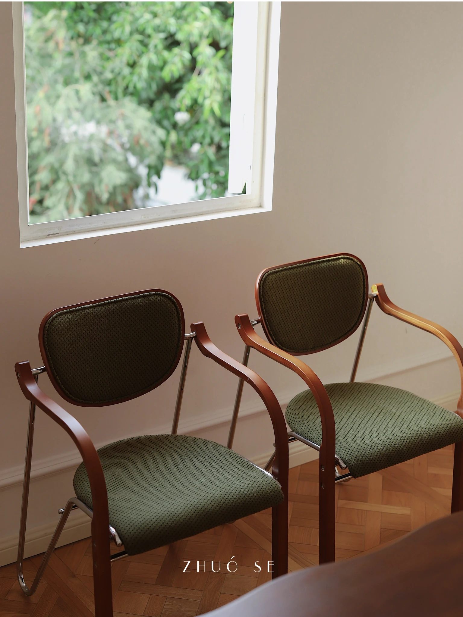 ZHUOSE "Green Time" French Vintage Solid Wood Armchair with Stainless Steel Soft Cushion - Stylish Backrest Chair for Living Room