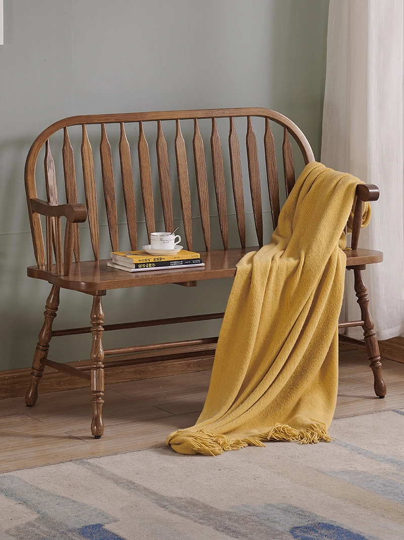 American Solid Wood Dining Chair - Vintage Bench for Two, Stylish Backrest Chair for Home, Perfect for Patio or Dining Room, Long Seat Design for Comfort and Elegance