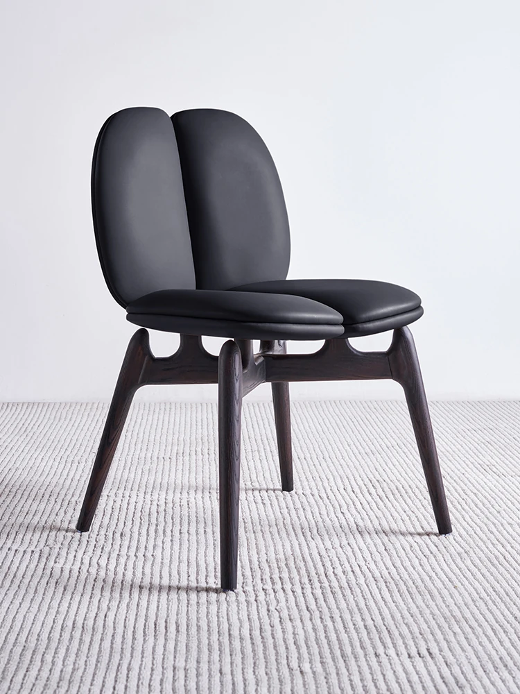 JIALONGYUAN丨Italian Minimalist Dining Chair - Designer Leather Seat with Backrest, Perfect for Your Home Dining Table and Stylish Decor